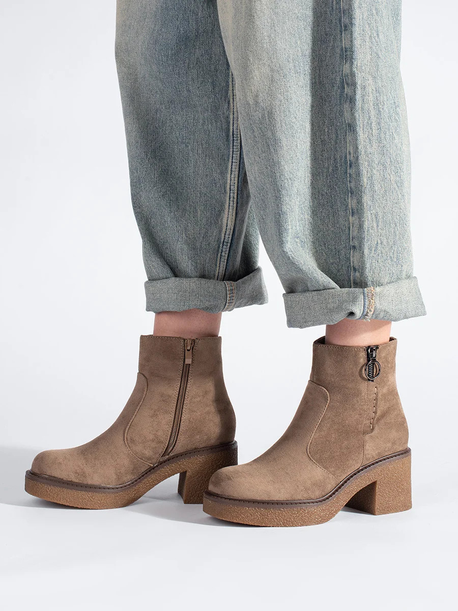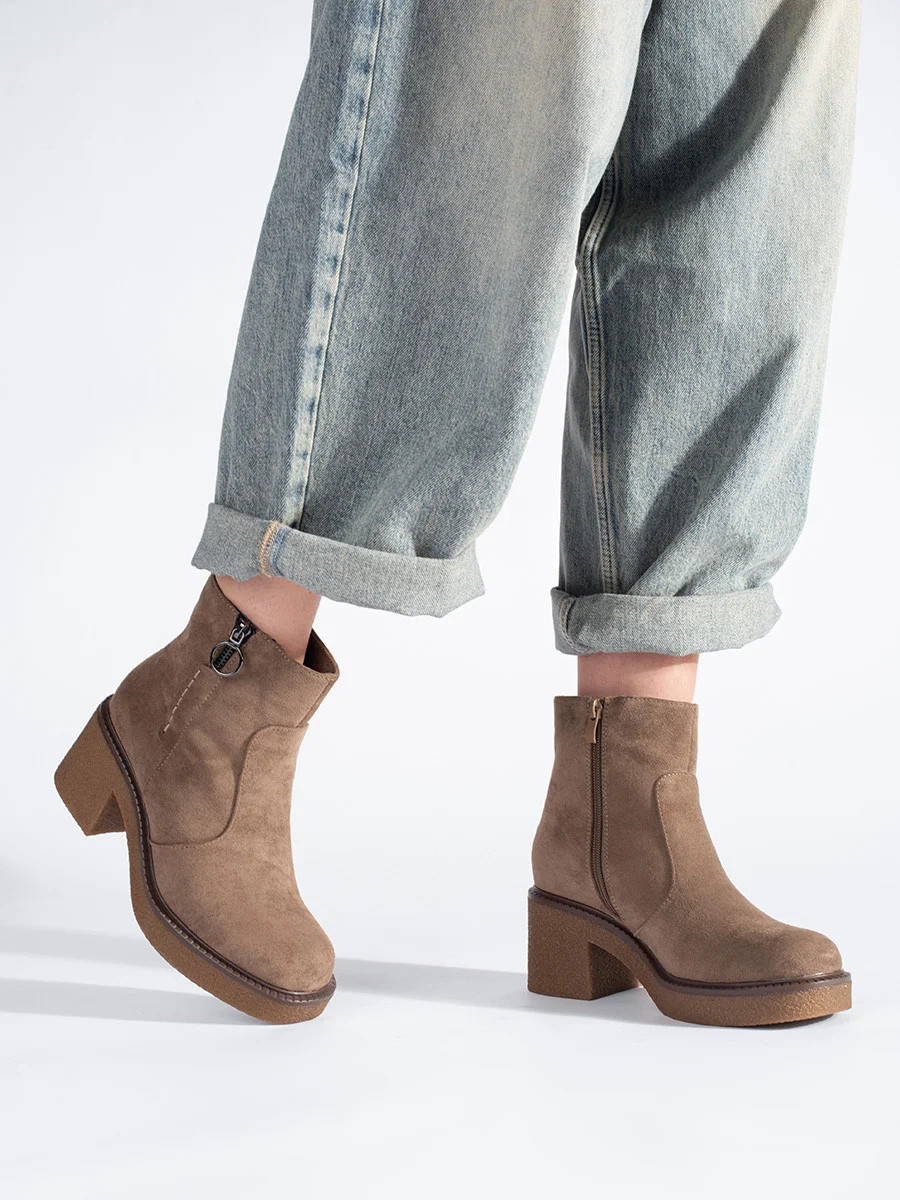 Stylové dámské kotníčkové boty hnědé na širokém podpatku
