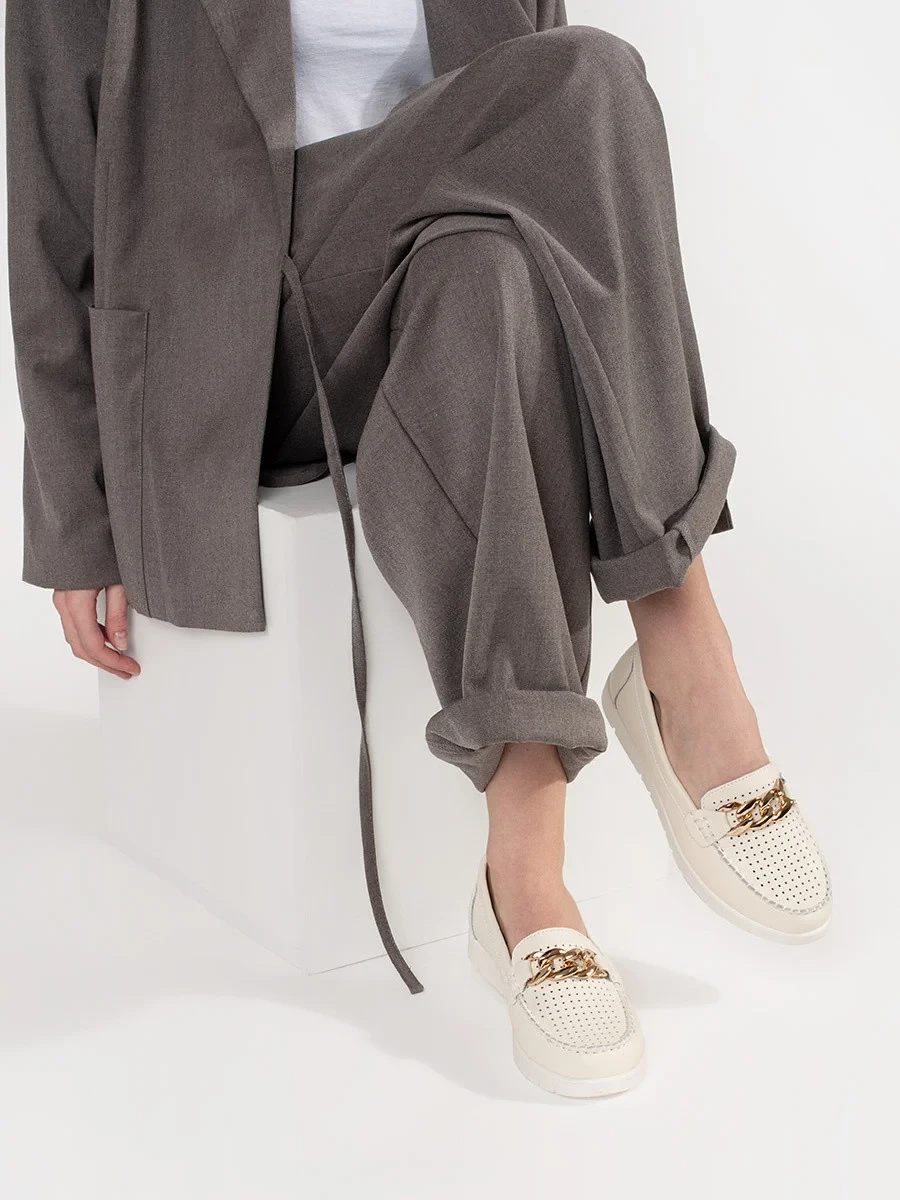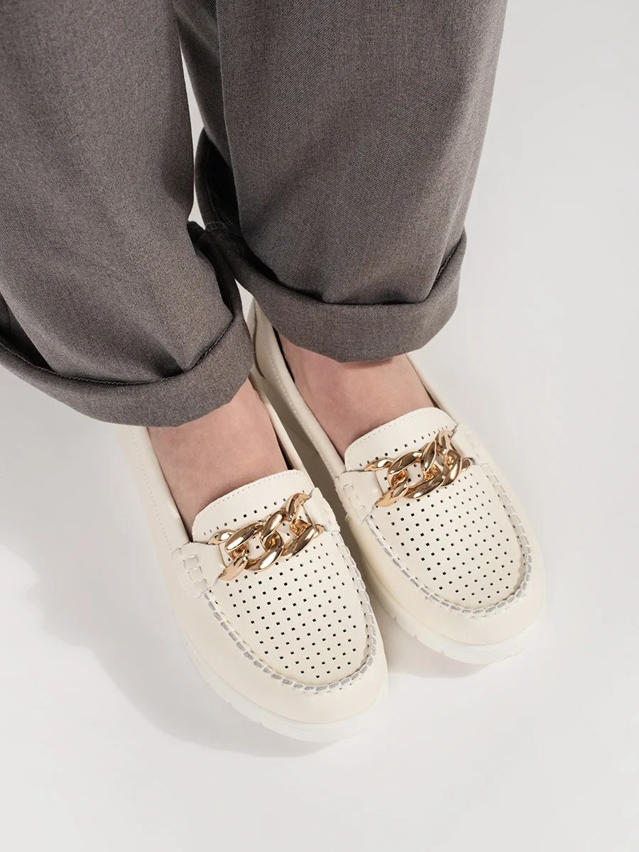 Stylové Jasnobeżowy mokasíny dámské platforma