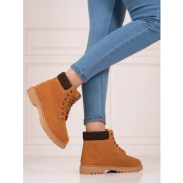 Přidání recenze k Stylové kotníčkové boty dámské hnědé na plochém podpatku