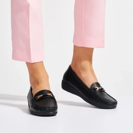 Stylové mokasíny dámské černé na klínku