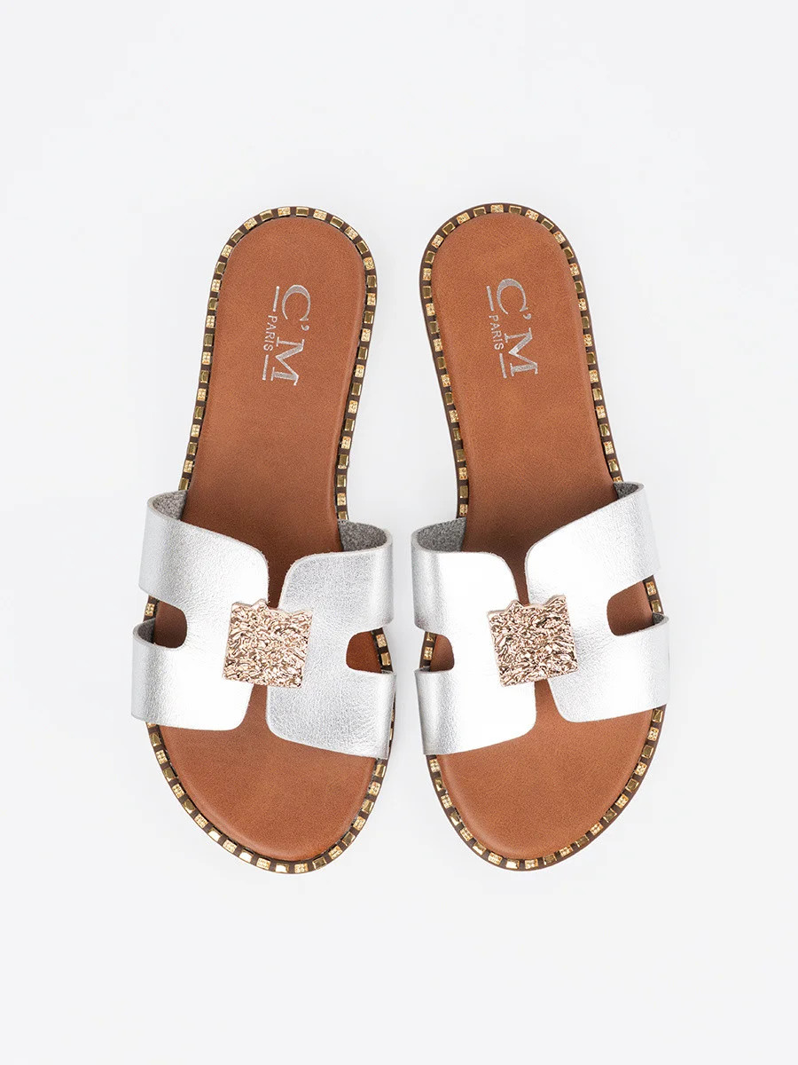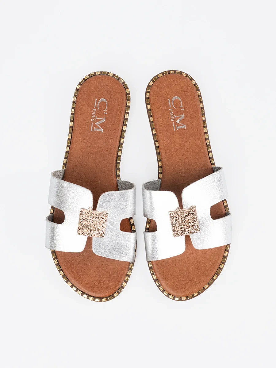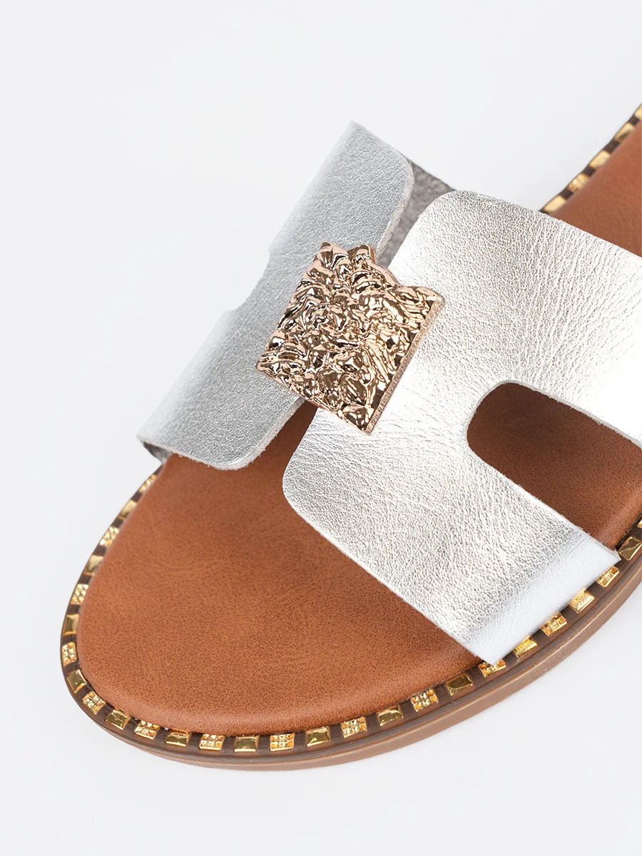 Stylové nazouváky stříbrné dámské na plochém podpatku