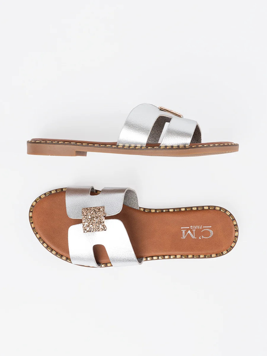 Přidání recenze k Stylové nazouváky stříbrné dámské na plochém podpatku