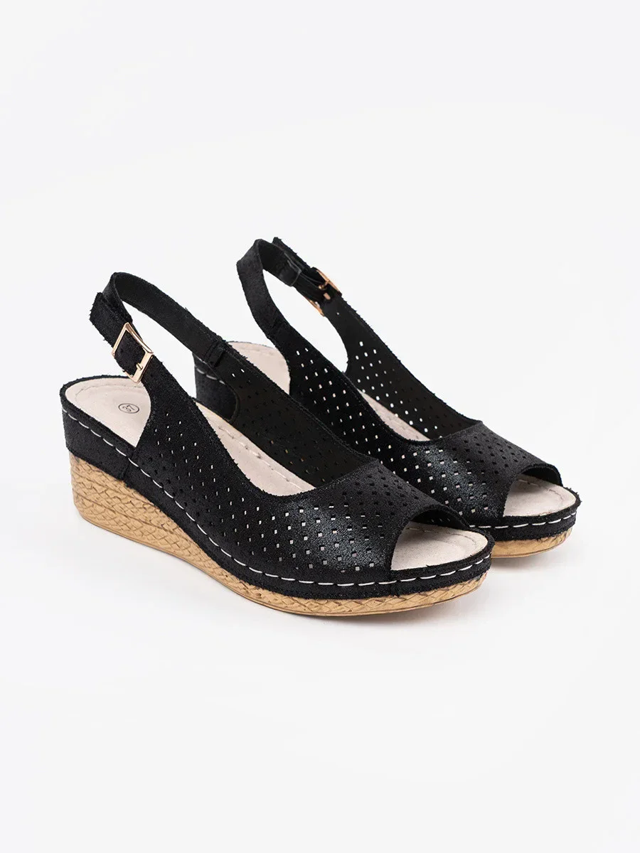 Stylové sandály černé dámské na klínku