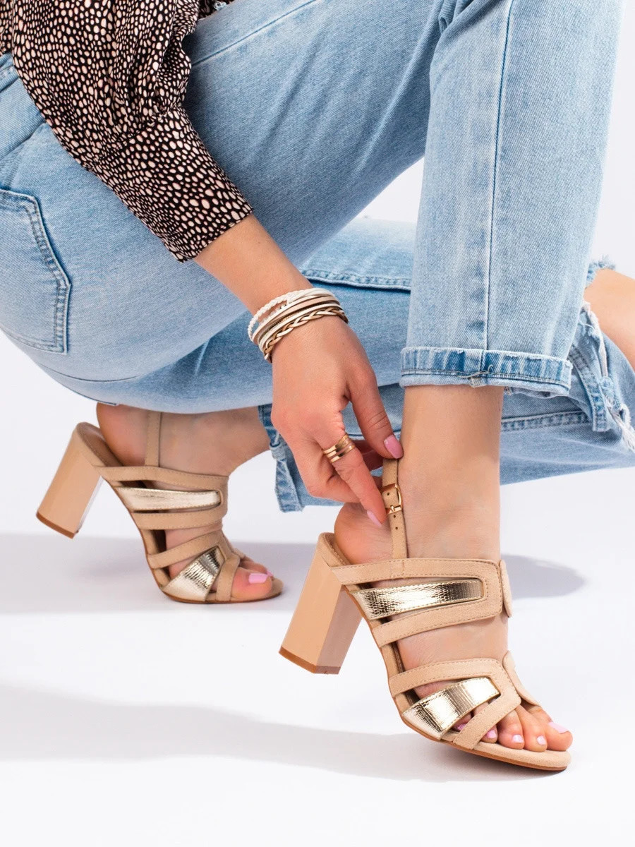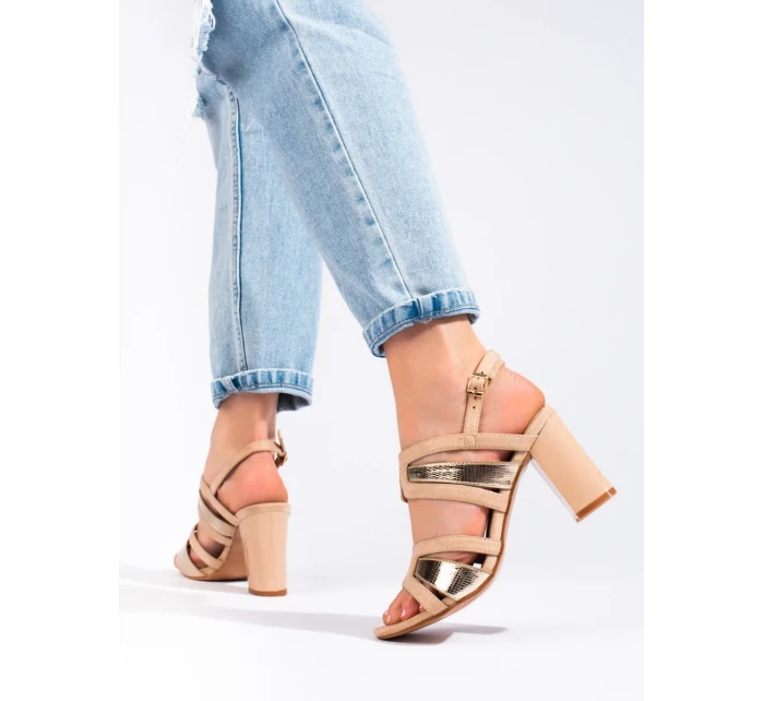 Produkt Dámské sandály se zvířecím motivem na širokém podpatku model 17995461 - GOODIN prodáváme v těchto velikostech: 38a barvách hnědá-béžová1210004432854