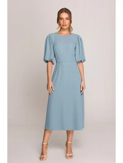 S376 Tužkové šaty s asymetrickým výstřihem - královská modř