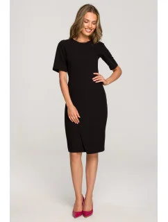 S317 Pouzdrové šaty s dvojitým předním dílem - černé