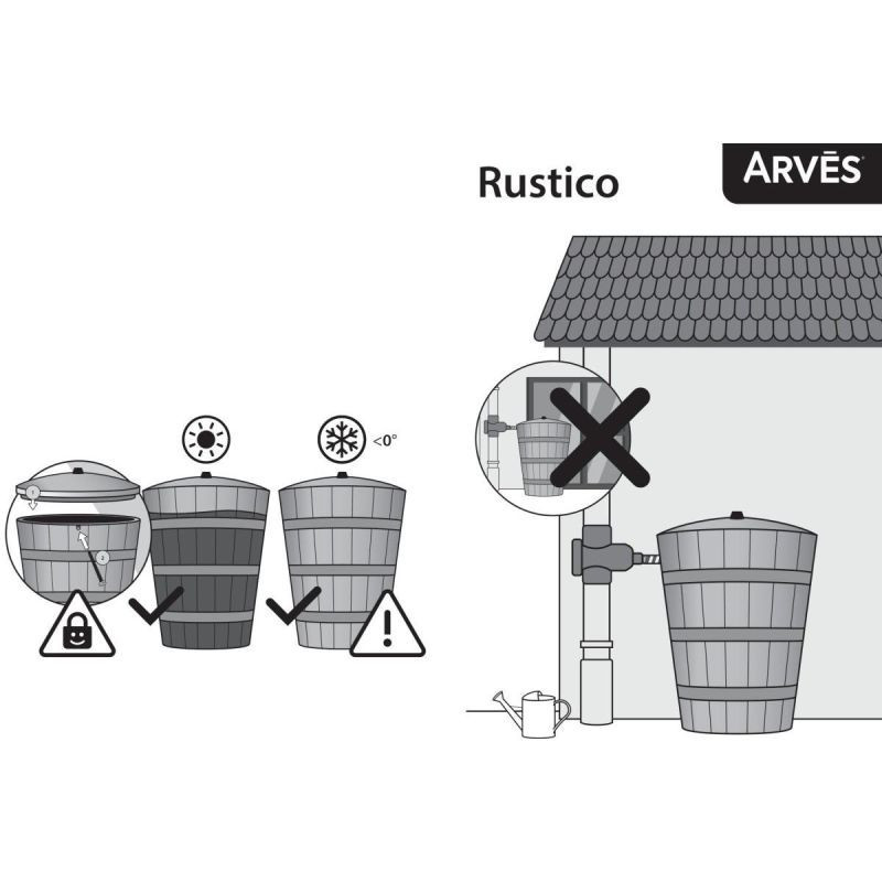 Nádrž na dešťovou vodu Rustico 275 l je vyrobena z vysoce kvalitního plastu s nejmodernější technologií, která zajišťuje tuhost, ultrapevnost a odolnost vůči nízkým a vysokým teplotám a UV záření.