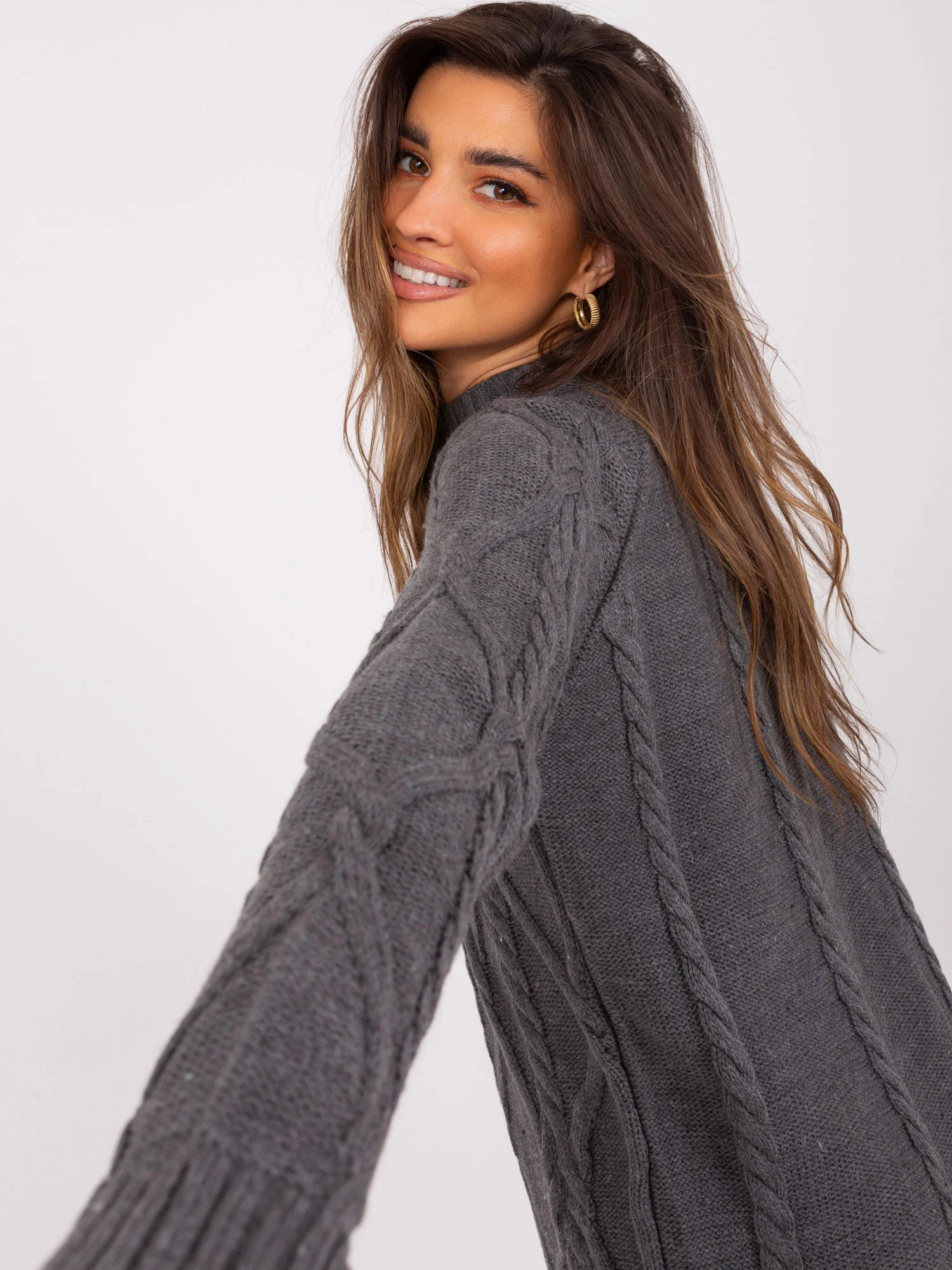 Modelka ma na sobie rozmiar one size. Wymiary modelki: wzrost 173 cm, biust 89 cm, talia 65 cm, biodra 91 cm