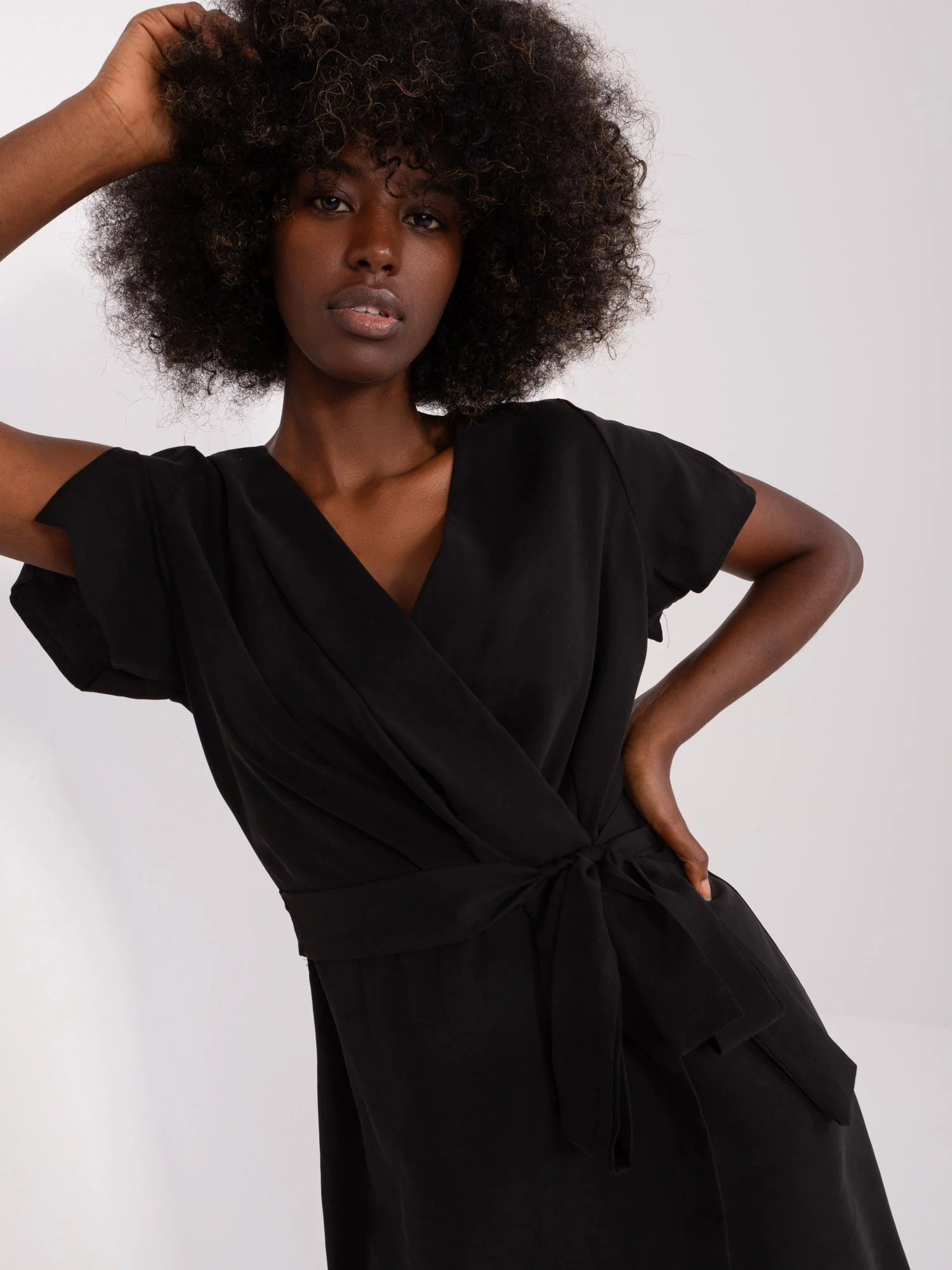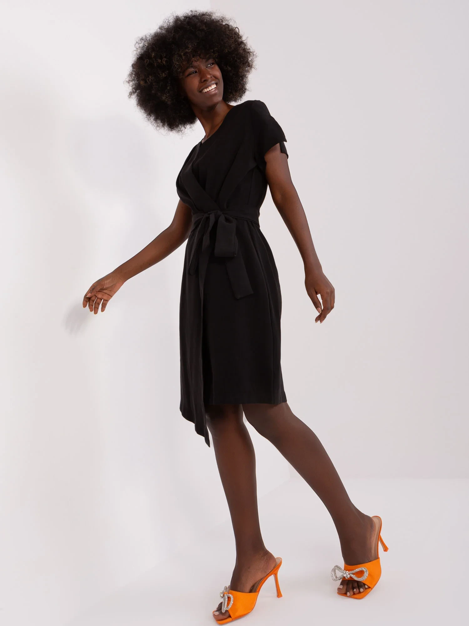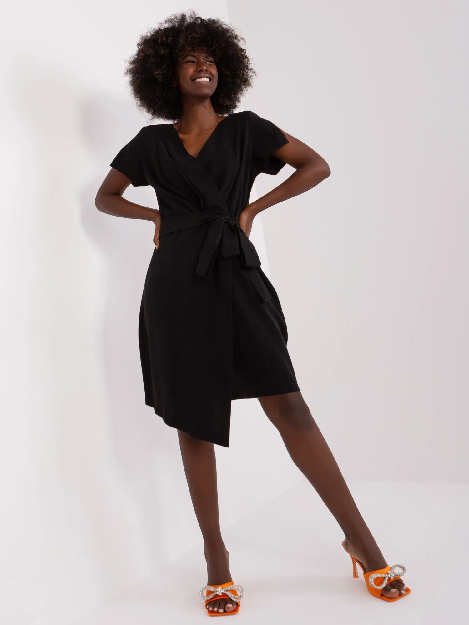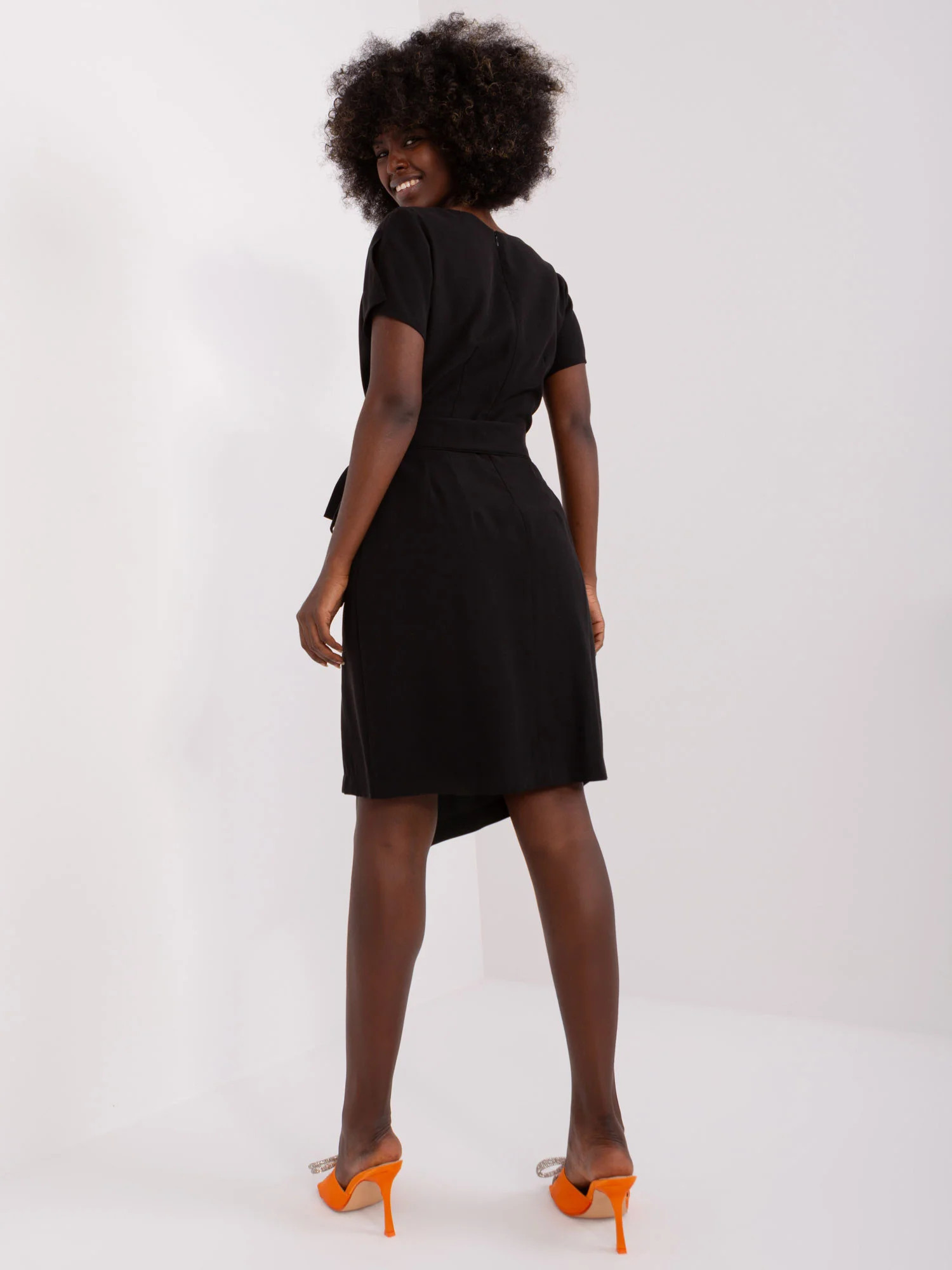 Czarna asymetryczna sukienka z paskiem ZULUNA .