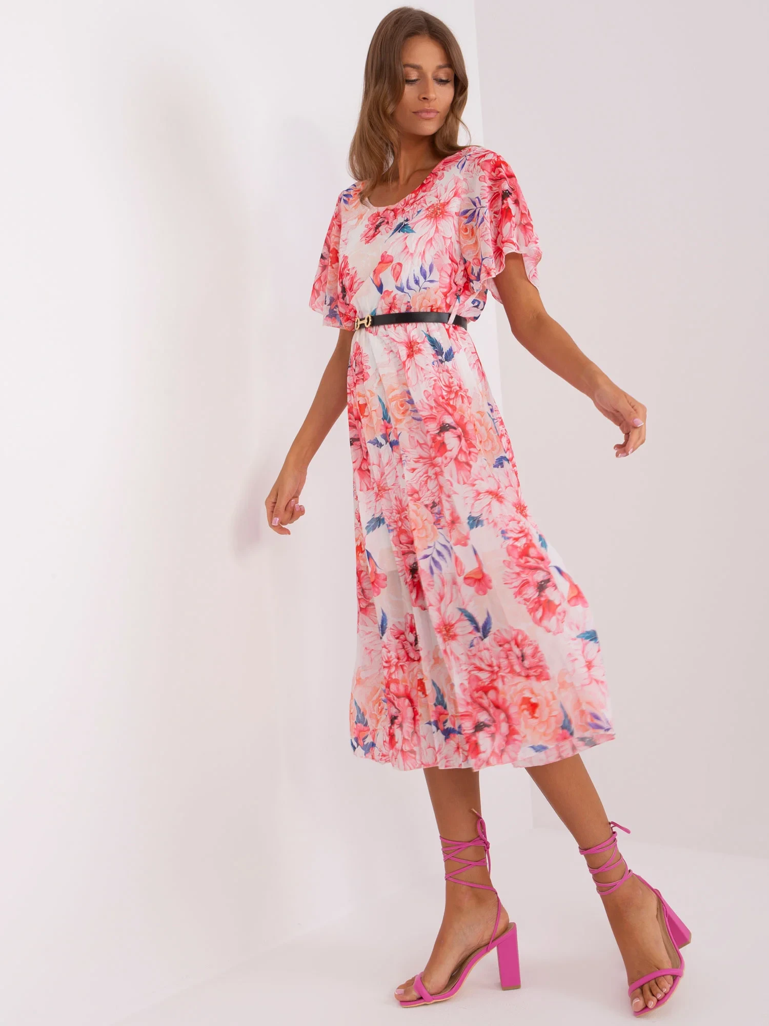 Wymiary sukienki w rozmiarze one size mierzone na płasko: szerokość pod pachami - 50 cm, długość całkowita - 122 cm.