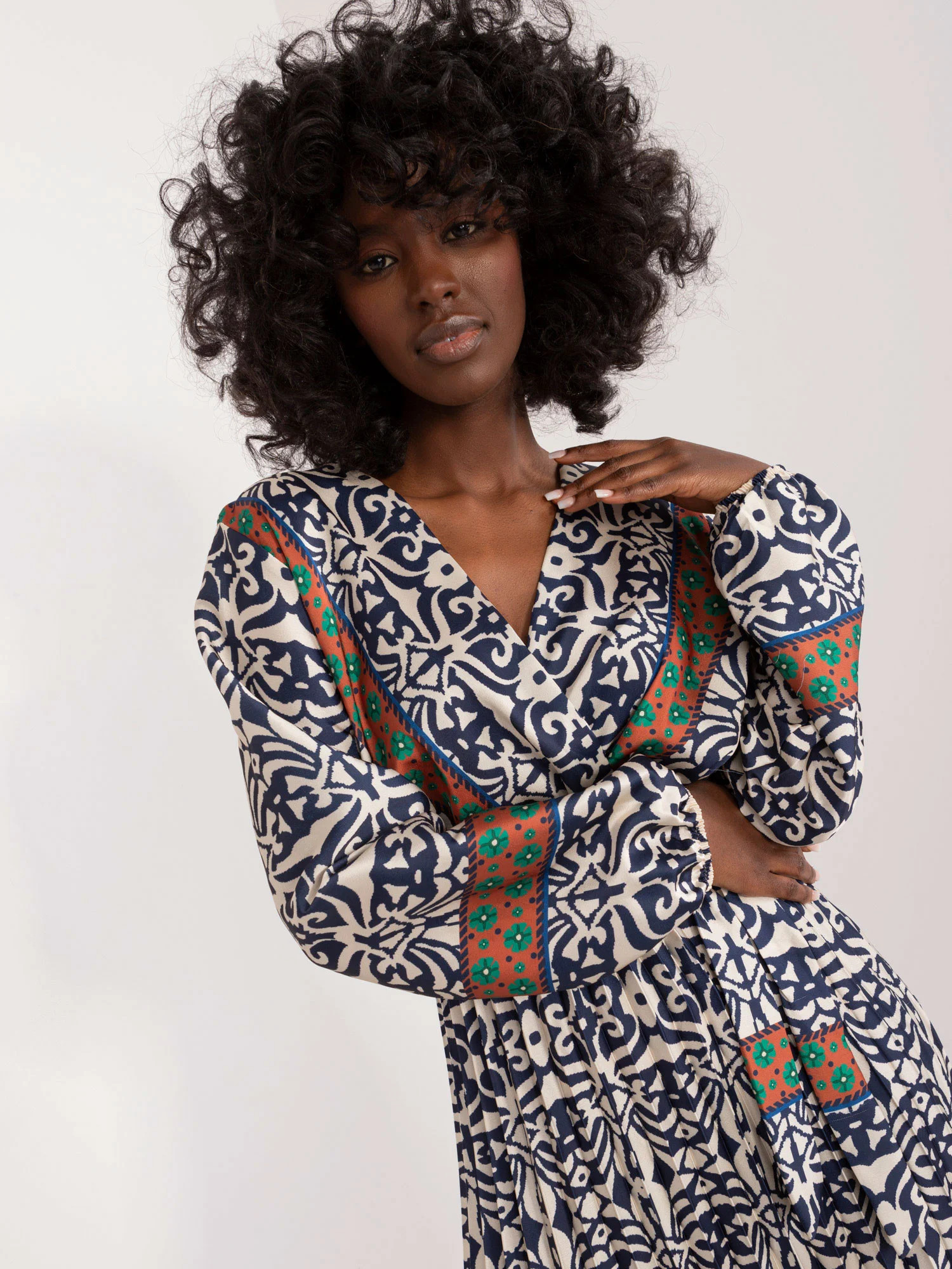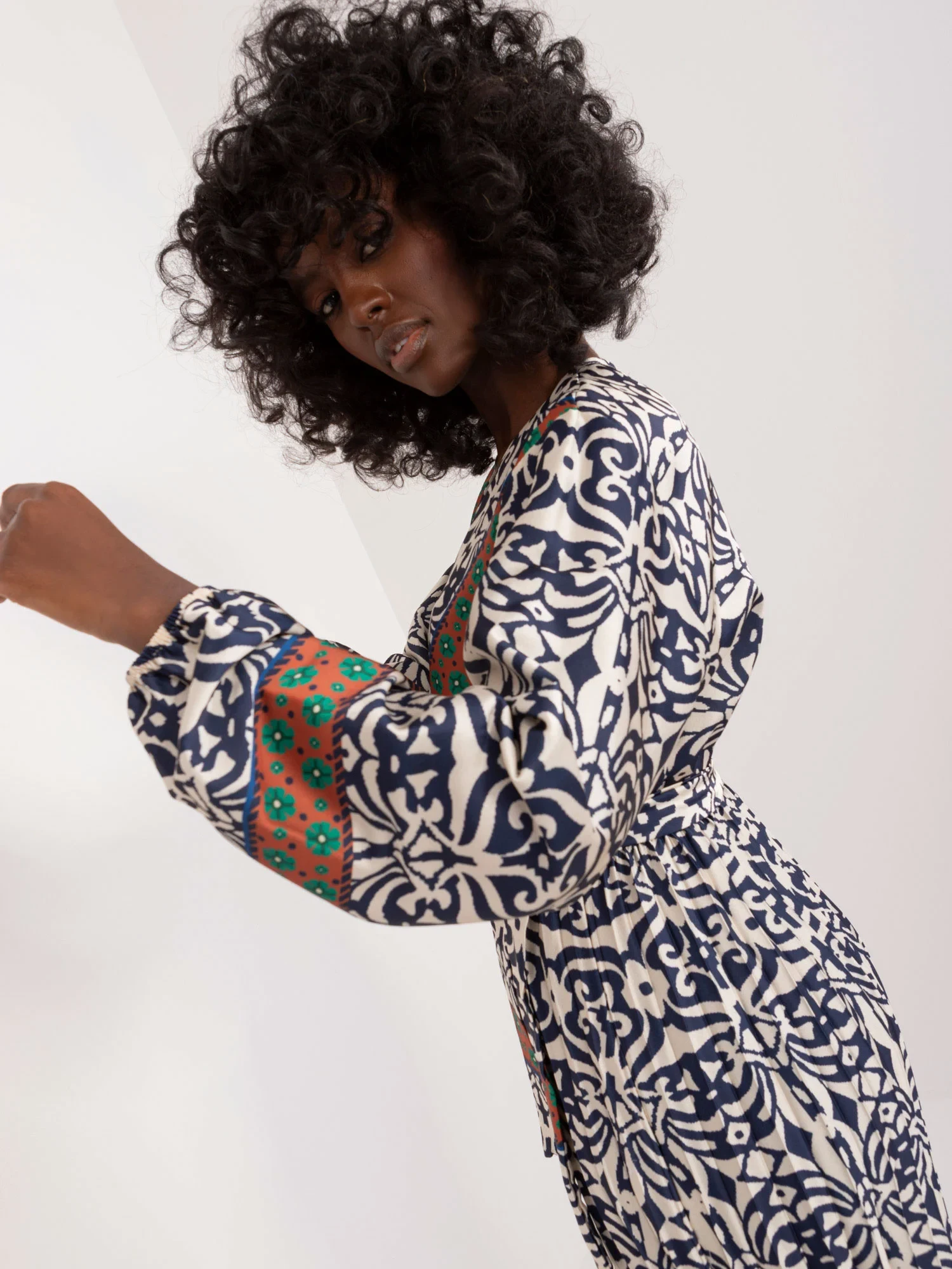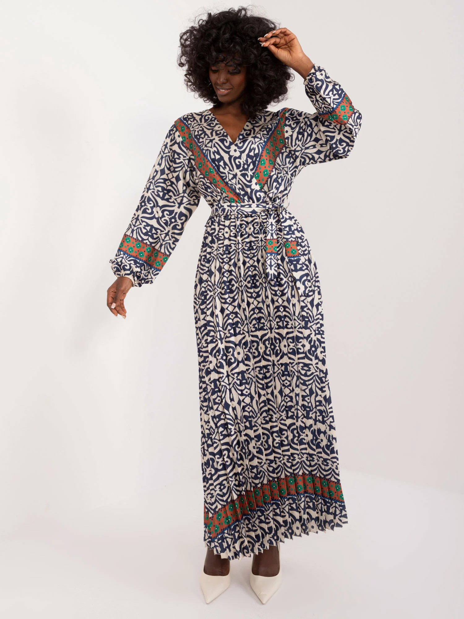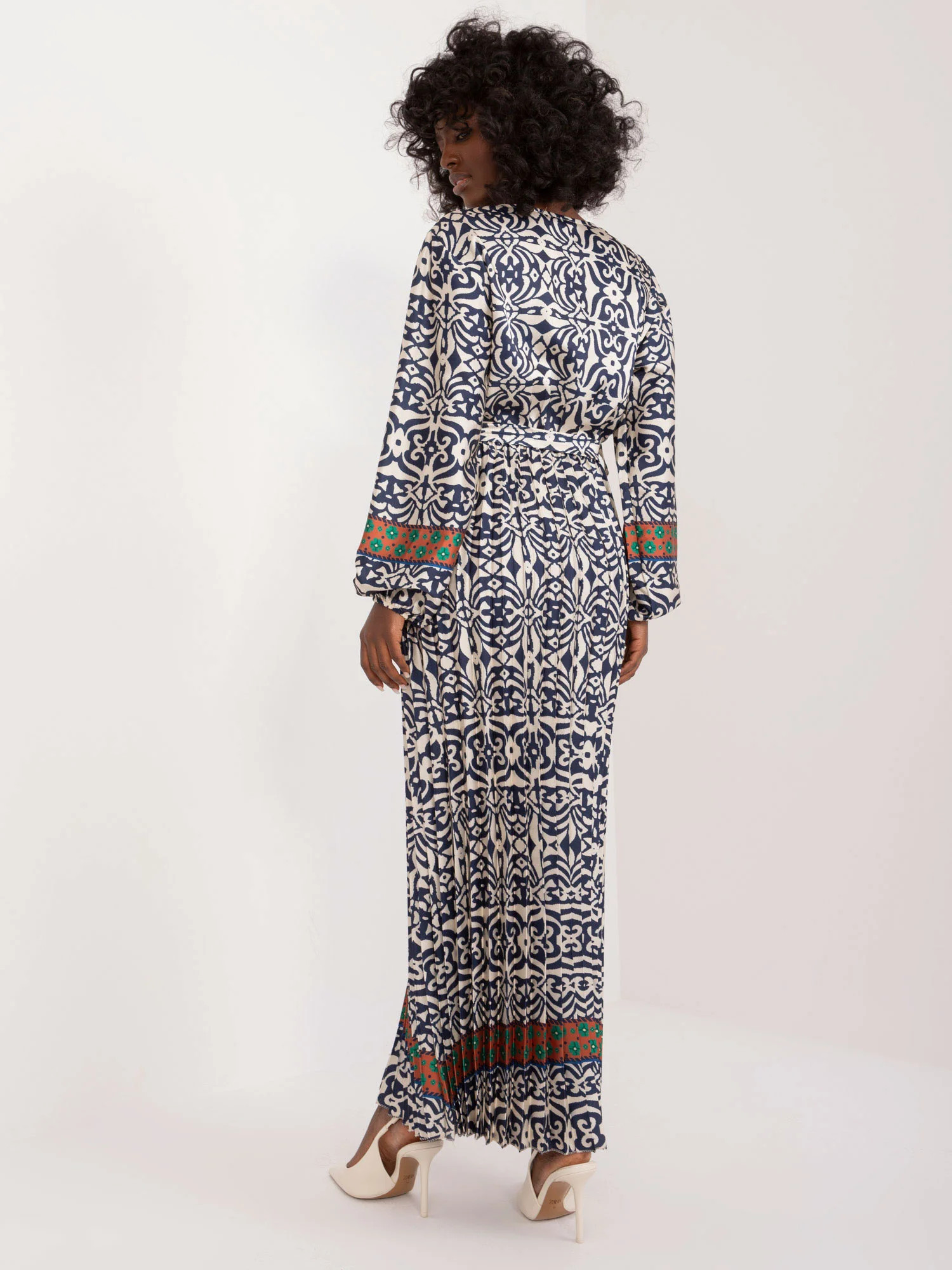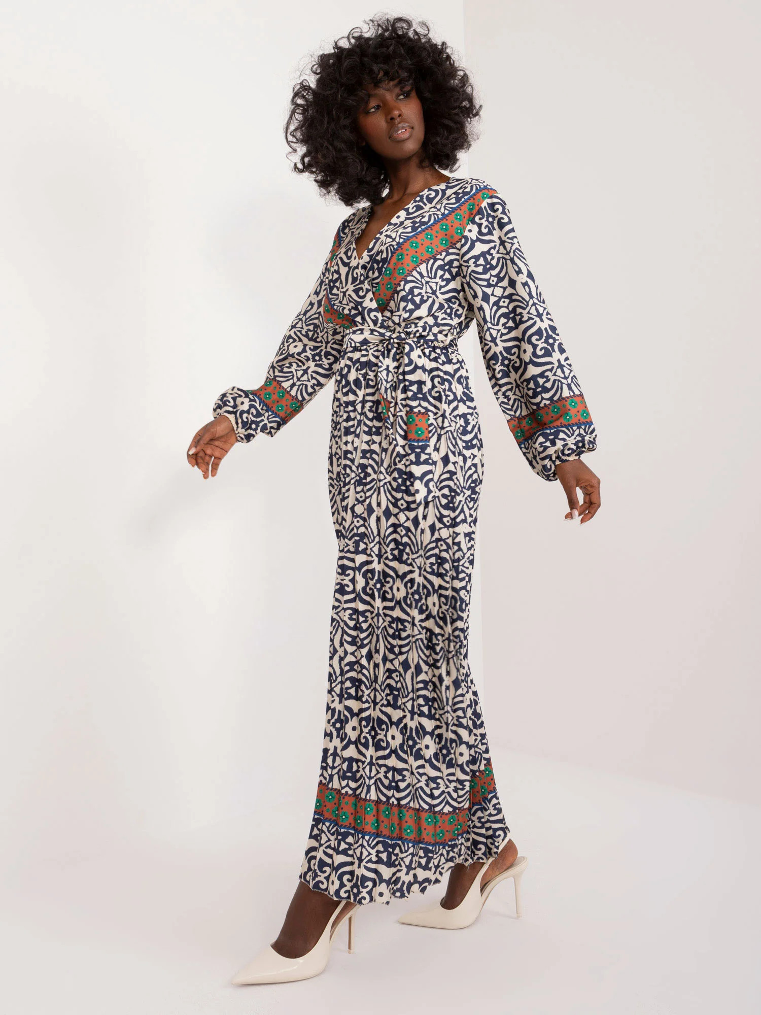 Wymiary sukienki w rozmiarze one size mierzone na płasko: szerokość pod pachami - 39 cm, długość rękawa - 57 cm, długość całkowita - 136 cm.