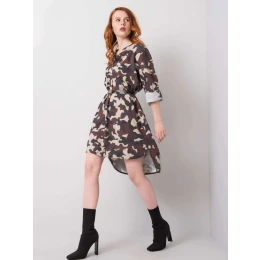 Beżowo-brązowa sukienka z nadrukiem moro.