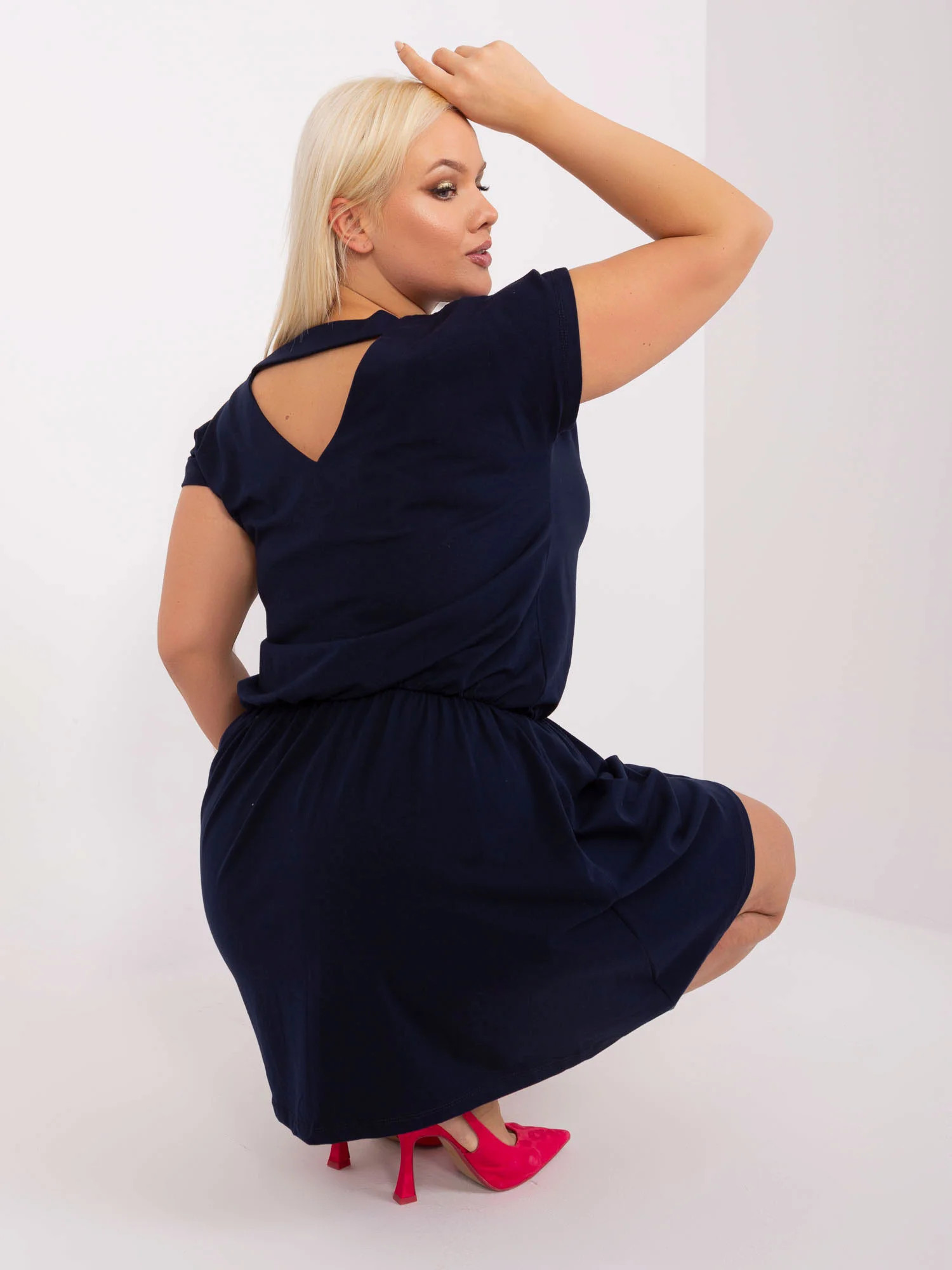 Wymiary sukienki w rozmiarze M mierzone na płasko: szerokość pod pachami - 54 cm, długość całkowita - 92 cm.