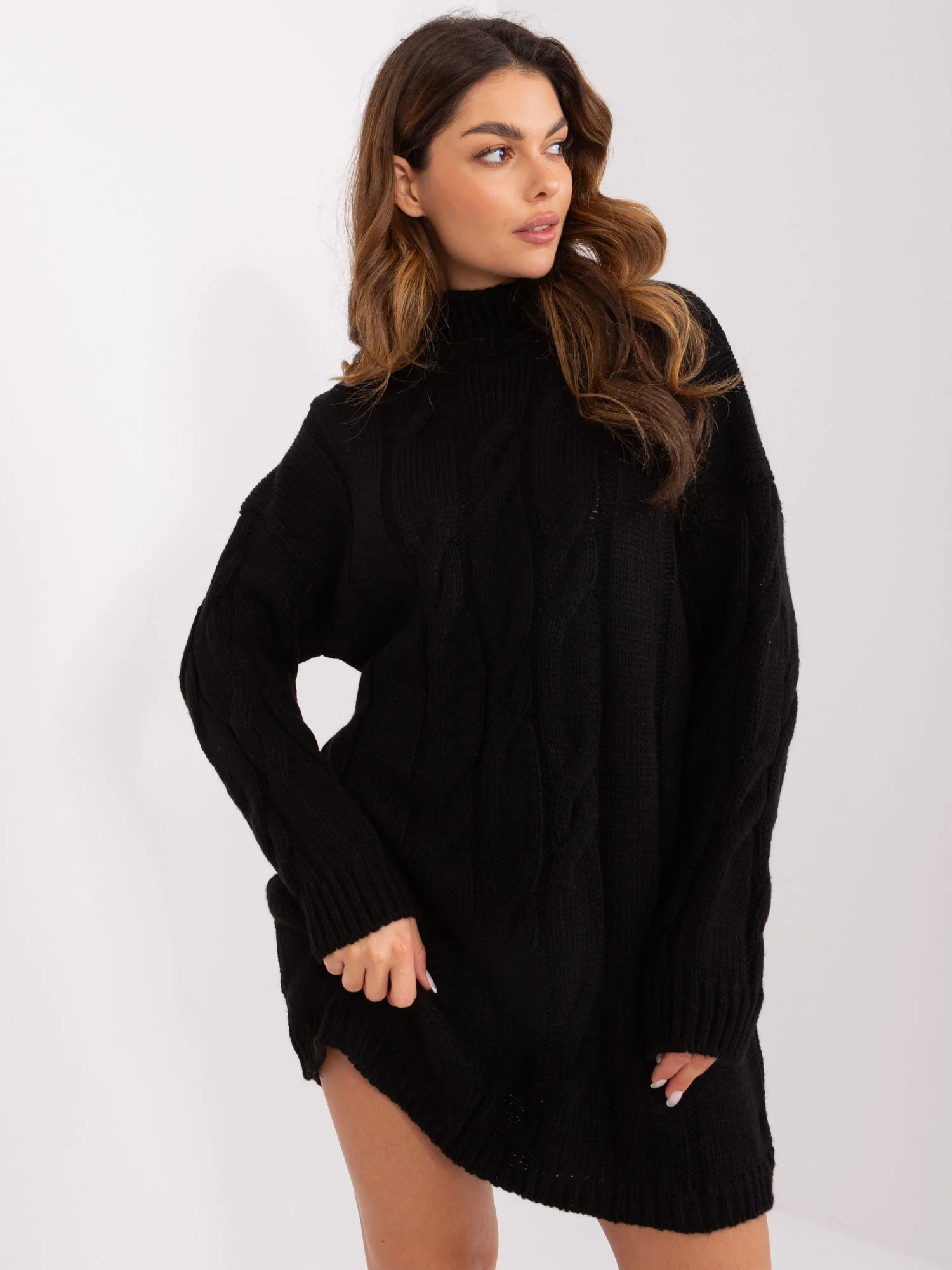 Modelka ma na sobie rozmiar one size. Wymiary modelki: wzrost 173 cm, biust 85 cm, talia 62 cm, biodra 95 cm.