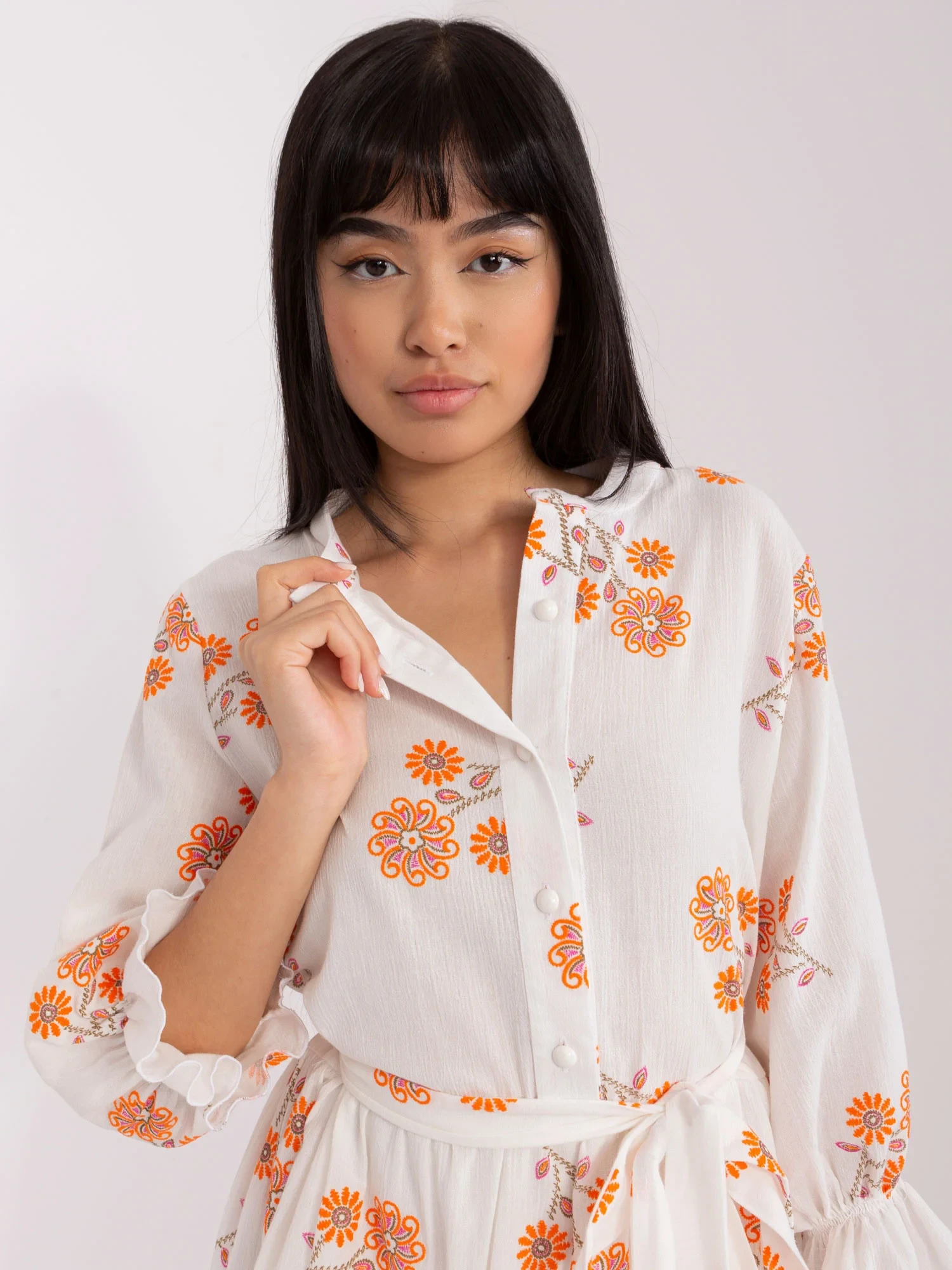 Modelka ma na sobie rozmiar M. Wymiary modelki: wzrost 167 cm, biust 73 cm, talia 64 cm, biodra 91 cm.
