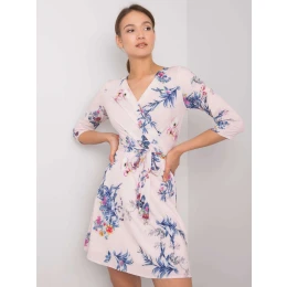 Jasnoróżowa sukienka damska w roślinne desenie.