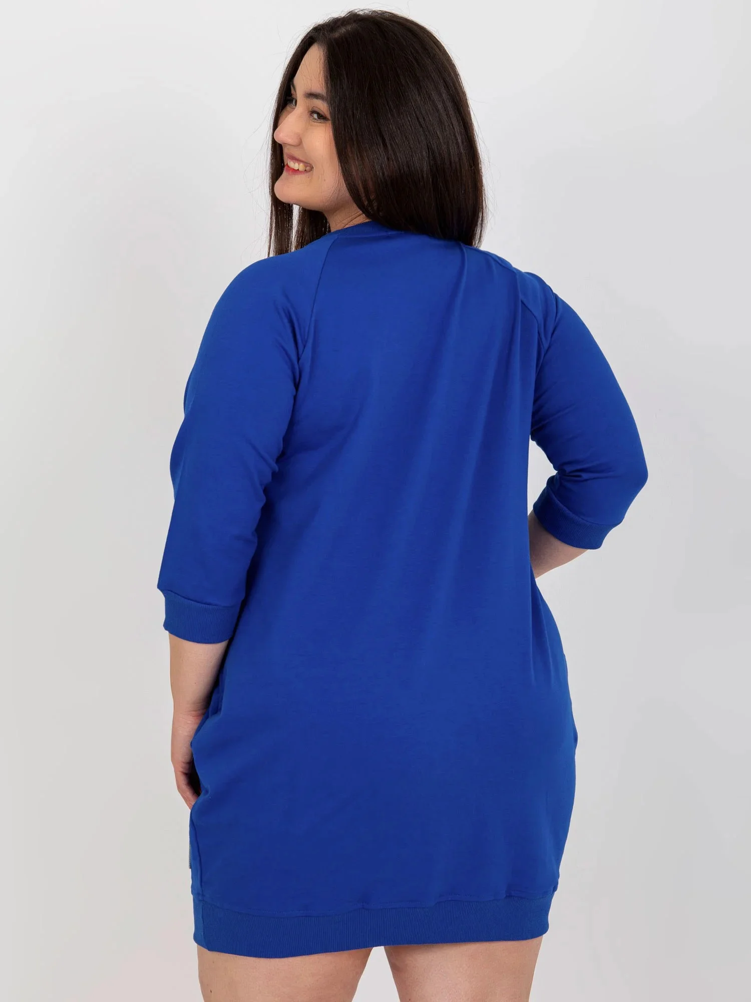 Wymiary sukienki w rozmiarze one size mierzone na płasko: szerokość pod pachami - 59 cm, długość całkowita - 87 cm, długość rękawa - 42 cm.