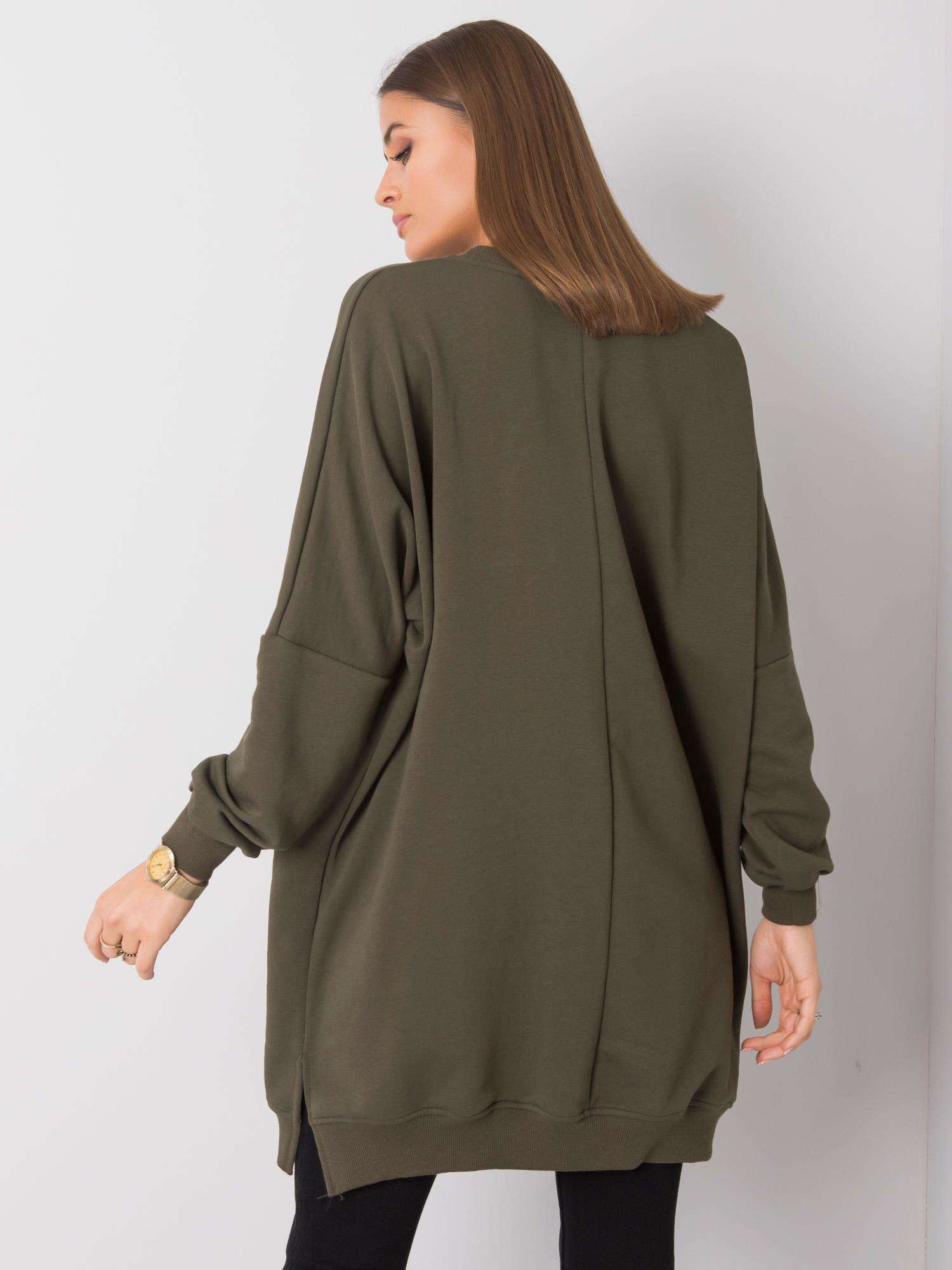 Wymiary bluzy w rozmiarze one size mierzone na płasko: szerokość pod pachami - 79 cm, długość całkowita - 88 cm, długość rękawa - 62 cm