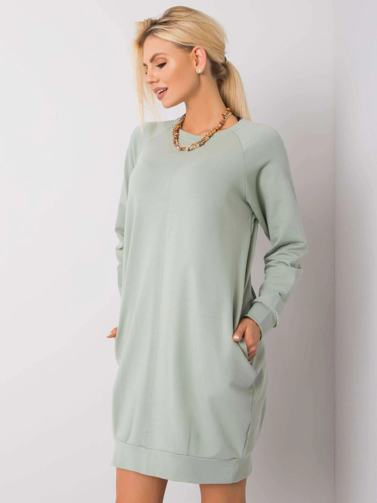 Pistacjowa bawełniana sukienka.