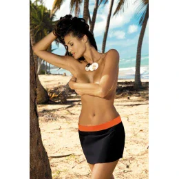 Koketní a velmi praktická plážová sukně, která může úspěšně nahradit oblíbené pareo nebo tuniku. Je vyrobena z pružné italské tkaniny a zakrývá boky a hýždě. Hodí se na procházky po pláži a do přímořských kaváren. Hladké, zdobené barevnou pryží. Je nadčasová a univerzální - skvěle se hodí k jakémukoli typu plavek.