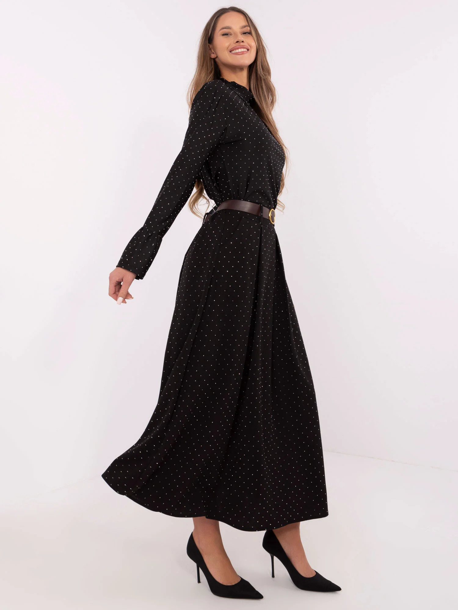 Modelka má na sobě jednu velikost. míry modelky: výška 176 cm, prsa 90 cm, pas 62 cm, boky 94 cm.
