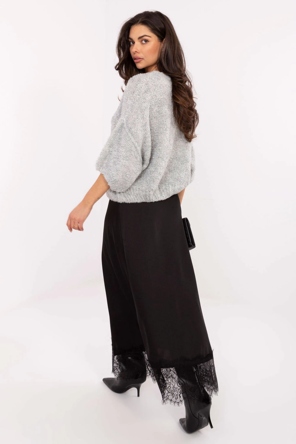 Elegantní saténová maxi sukně je výrazem ženskosti a jemného stylu. Vyrobená z jemně lesklé látky s hladkou strukturou, krásně padne a dodá každému outfitu klasický šarm. Elastický pás zajišťuje ideální přizpůsobení a pohodlí nošení, bez zapínání je model mimořádně pohodlný a praktický. Spodek sukně zdobí jemná krajková ozdoba, která dodává celku romantický a elegantní charakter. Maxi délka opticky prodlužuje siluetu a zdůrazňuje její štíhlost. Sukně se skvěle hodí jak do každodenních outfitů, do práce, tak i na slavnostní nebo elegantní příležitosti, stačí změnit doplňky a dosáhnete zcela jiného efektu.