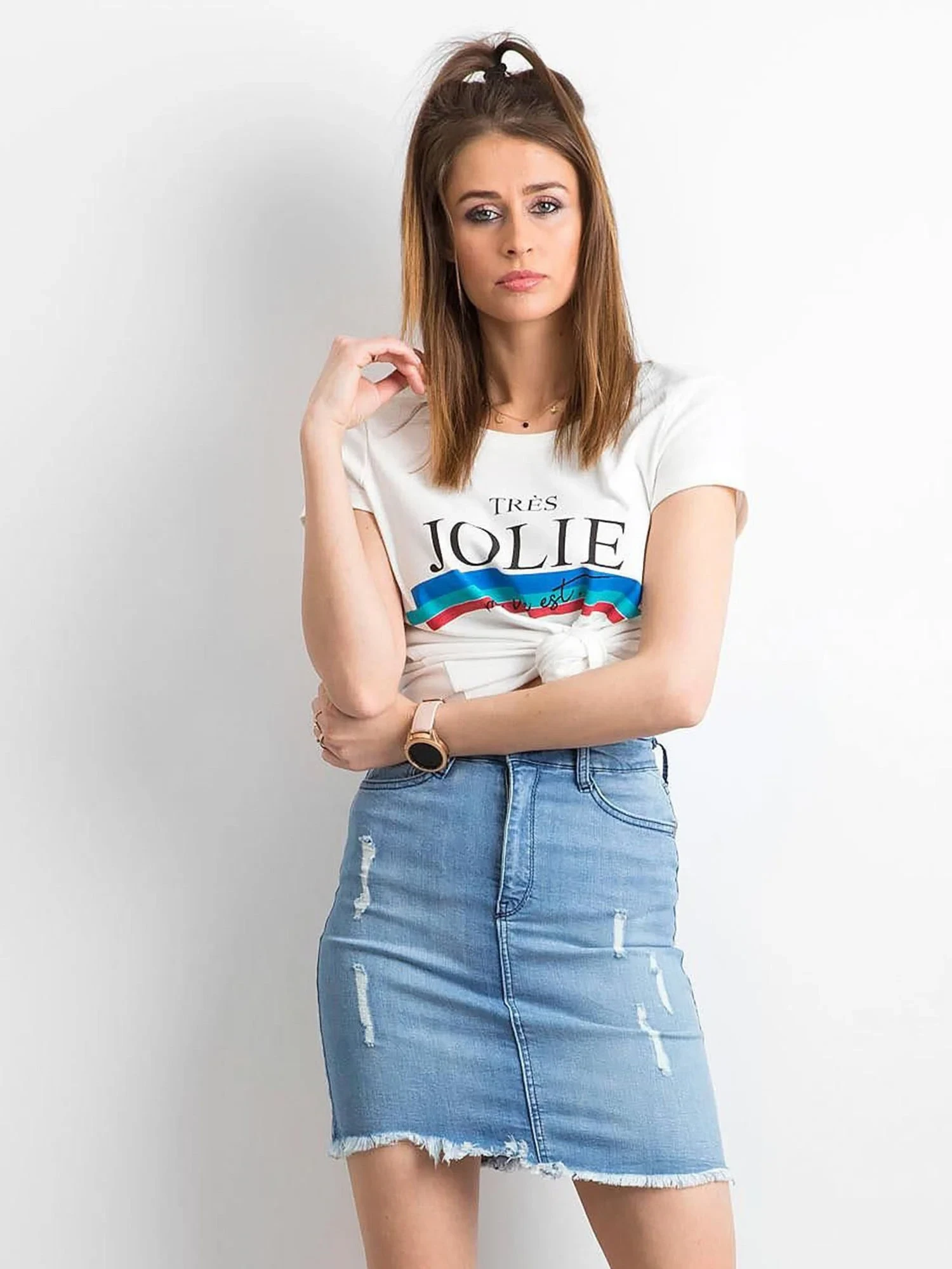 Modrá džínová sukně.