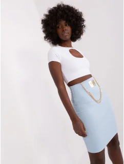 Světle modrá dámská sukně.
