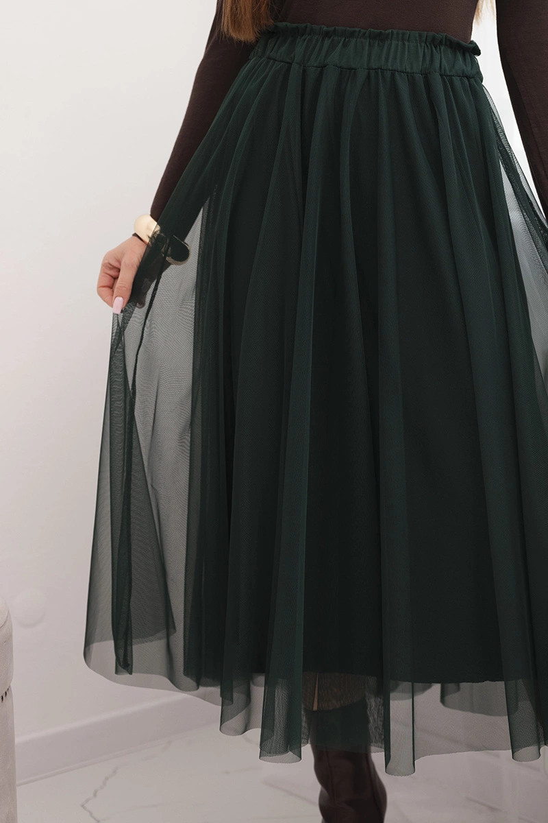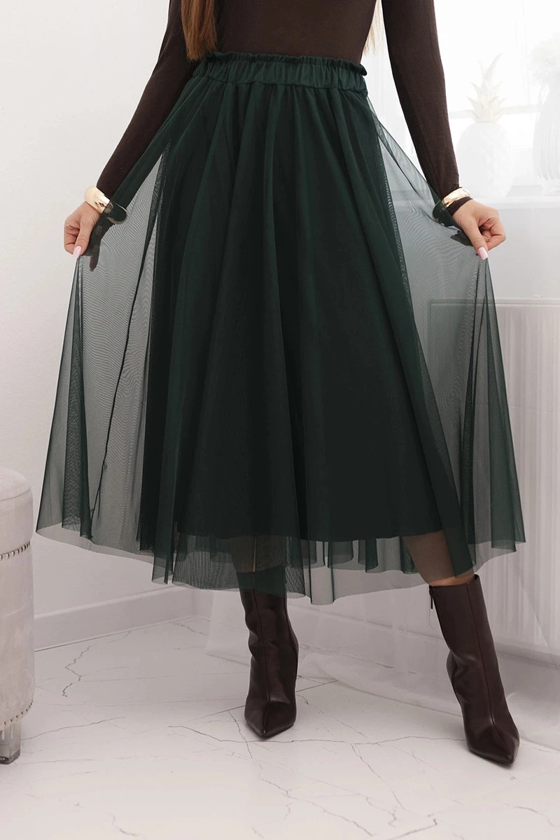 Tato dámská midi tylová sukně je výjimečně ženský kousek, který dodá lehkost každému outfitu. Vyrobená z několika vrstev jemného tylu se krásně usazuje při pohybu a vytváří jemný objemový efekt. Elastický pásek v pase zajišťuje pohodlí při nošení a dokonalé přizpůsobení postavě.