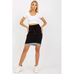 Tepláková sukně s vysokým pasem, elastickým pasem a vázáním. Sukně s kapsami, dole se stahováním. Ideální na léto.