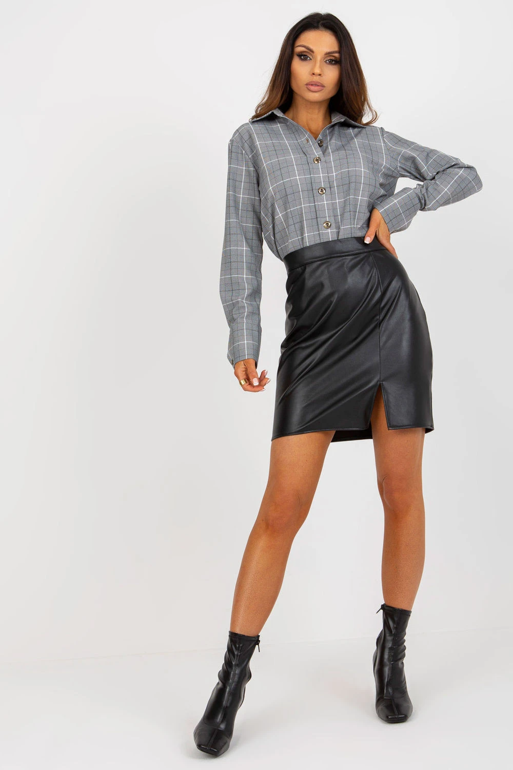 Mini sukně z ekokůže se zapínáním na krytý zip. Sukně má dole rozparek. Ideální pro mnoho příležitostí.