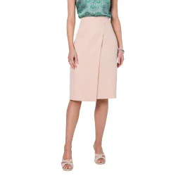 Klasická sukně áčkového střihu s asymetrickým dvojitým předním dílem. Sukně je celá podšitá a zapíná se na krytý zip.