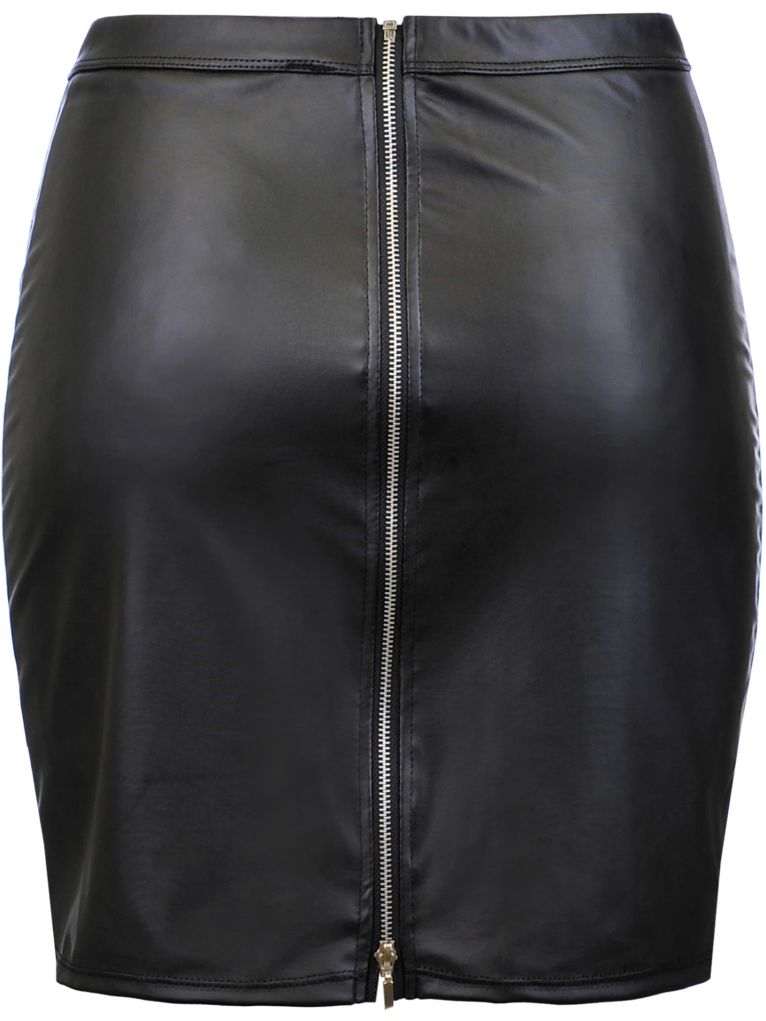 Tato vypasovaná sukně z lesklého materiálu připomínajícího latex je esencí moderní smyslnosti. Materiál wetlook upoutá pozornost, dokonale zvýrazní vaše křivky a vytvoří efekt druhé kůže. Vzadu se po celé délce táhne nápadný stříbrný zip - praktický a stylový akcent v jednom.