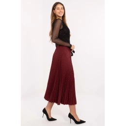 Elegantní a ženská plisovaná sukně midi délky vyrobená z vysoce kvalitní viskózy s přídavkem elastanu, která poskytuje lehkost, prodyšnost a pohodlí při nošení. Model má elastický pás, díky kterému se skvěle přizpůsobuje postavě a není potřeba žádné zapínání. Další výhodou je pásek ve formě šátku k uvázání, který dokáže zdůraznit pas a dodat outfitu elegantní charakter. Celý povrch látky zdobí třpytivé flitry, které jemně odrážejí světlo, dodávají sukní jedinečný půvab a eleganci. Jedná se o skvělý návrh na slavnostní události, rodinná setkání nebo elegantní vycházky vždy, kdy chcete vypadat stylově a elegantně.