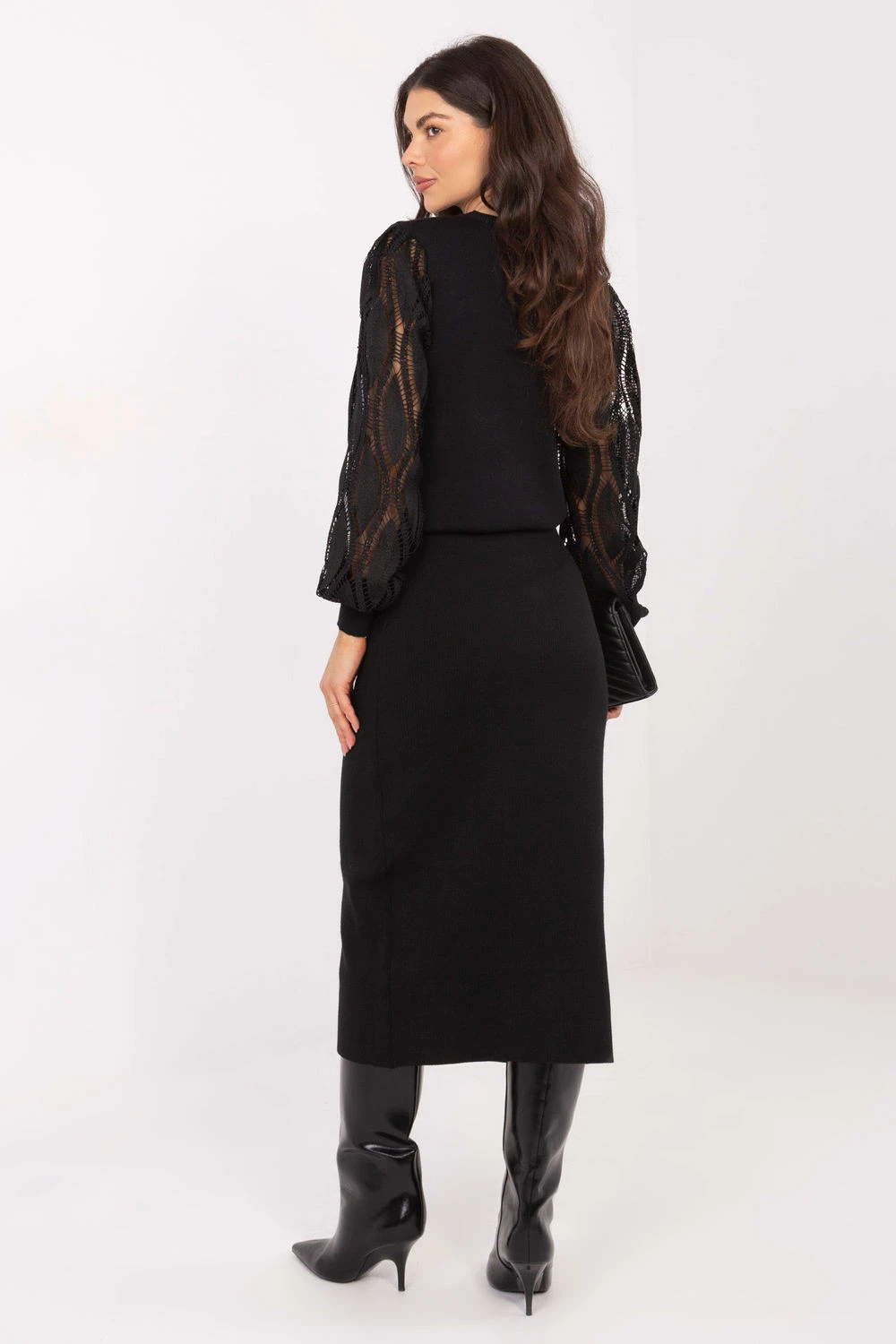 Elegantní úpletová suknička s hladkým vzorem, skvělá na každý den, do práce, ale i na více společenské příležitosti. Vyrobená z vysoce kvalitní směsi viskózy a polyesteru, zaručuje pohodlí nošení, jemnost a jemnou pružnost, skvěle se přizpůsobuje postavě. Model midi délky představuje nadčasový, klasický styl. V pasu je vsazena gumová pásek, díky které suknička perfektně sedí a zajišťuje pohodlí po celý den. Bez zapínání je velmi praktická a snadno se obléká. Na přední straně jsou umístěny ozdobné knoflíky, které dodávají celku eleganci a jemně zdůrazňují minimalistický střih. Ideální volba pro ženy, které ocení kombinaci elegance, pohodlí a univerzálního stylu.