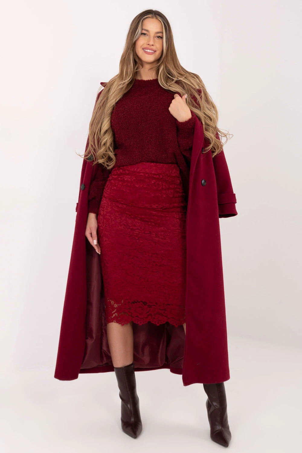 Elegantní sukně z krajkové látky je stylovým návrhem ideálním jak do každodenního nošení, do práce, tak i na slavnostní příležitosti. Její jedinečný charakter zdůrazňuje různorodá textura materiálu, která dodává celku jemnou, ženskou lehkost. Model midi délky vypadá velmi elegantně a univerzálně, podšívka zajišťuje pohodlí nošení a plnou volnost pohybů. V pasu je vsazena gumová páska, díky čemuž se sukně skvěle přizpůsobuje postavě a je pohodlná po celý den. Bez zapínání je mimořádně praktická a snadno se obléká. Jedná se o nadčasový kousek šatníku, který skvěle doplní elegantní outfity.