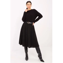 Elegantní a ženská rozkročená pletená sukně, ideální na každý den, do práce a na elegantnější příležitosti. Vyrobená z polyesterové směsi s elastanem, poskytuje pohodlí, pružnost a krásné uspořádání látky. Pletenina je pruhovaná, co dává celku výjimečnou, pestrou fakturu a decentní charakter. Sukně má délku pod koleno, díky čemuž vypadá vkusně a klasicky. Chybějící tradiční zapínání dělá model pohodlným na oblékání a perfektně se přizpůsobuje pasu. Další výhodou je zapínací pásek, který zdůrazňuje pas a dodává elegantní dokončení. Klasická, pohodlná a ženská ideální základ pro mnoho elegantních a každodenních stylizací.