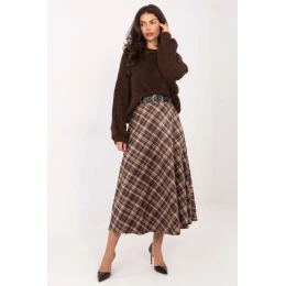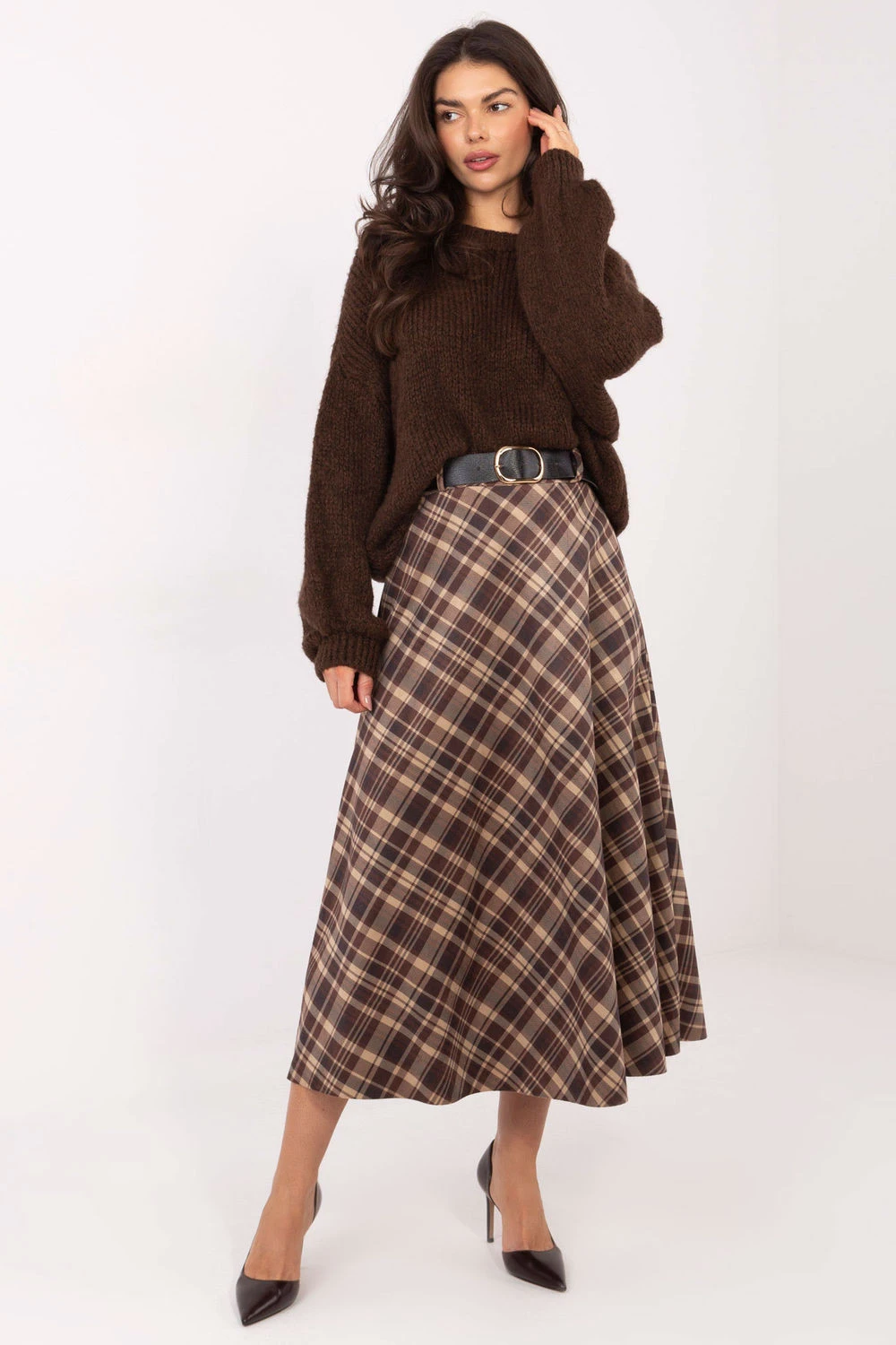 Elegantní a pohodlná midi sukně v kostkovaném designu, ideální na každý den i do práce. Vyrobená z bavlny, je prodyšná, měkká a pohodlná, a její klasický vzor kostky dodává stylizaci charakter a nadčasový šarm. V pasu je vsazena elastická guma, která zajistí ideální přizpůsobení a pohodlí při nošení po celý den. Model nemá zapínání, což z něj činí snadný k oblékání. Další výhodou je zapínací pásek, který zdůrazňuje pas a umožňuje lepší přizpůsobení. Univerzální, ženská a pohodlná, ideální pro každodenní stylizace s trochou elegance.