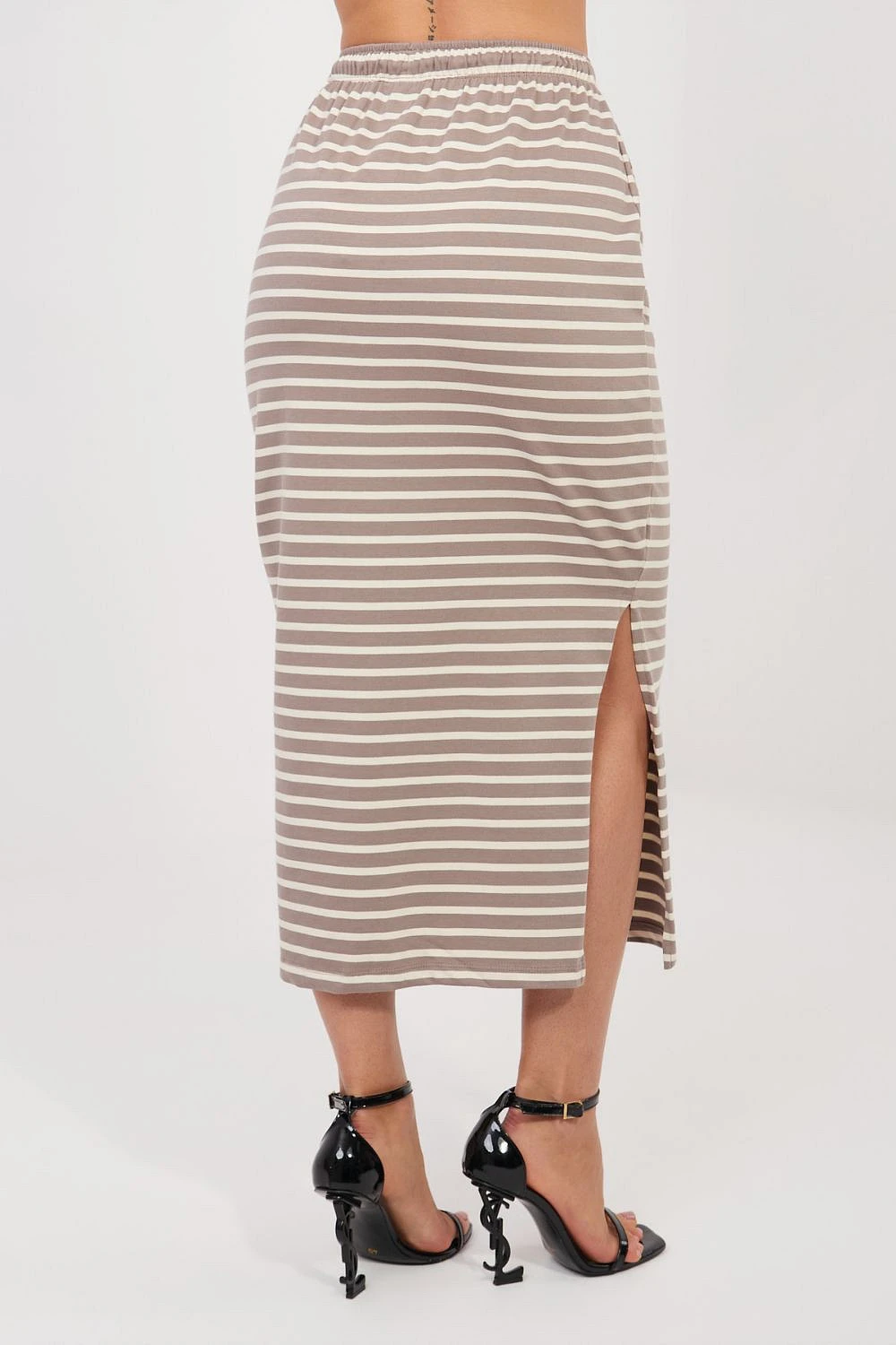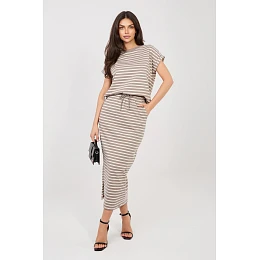 Elegantní dámská sukně v casual stylu je ideální volbou pro každodenní outfit. Hodí se jak na procházku, nákupy, tak i na setkání s přáteli, poskytující pohodlí a stylový vzhled. Model je vyroben z vysoce kvalitní bavlny, díky čemuž je materiál prodyšný, příjemný na pokožku a pohodlný na nošení po celý den. Sukně má střední délku midi, která jí dodává univerzální a ženský charakter. V pasu je vsazena elastická guma, která zajistí dobré přizpůsobení se postavě a pohodlí při nošení. Dalším prvkem je šňůrka v pasu, která má dekorativní funkci a zdůrazňuje pas. Celý model zdobí moderní pruhovaný vzor, který sukní dodává lehkost a letní styl. Model je také vybaven praktickými kapsami na zip, které zvyšují funkcionalitu. Je to skvělá volba pro každodenní outfit, spojující pohodlí s nadčasovým vzhledem.