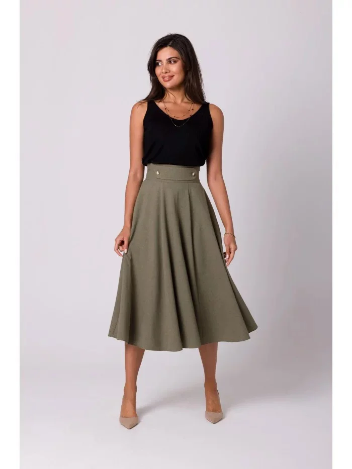 Sukně s vysokým pasem model 21896476 olivová - STYLOVE
