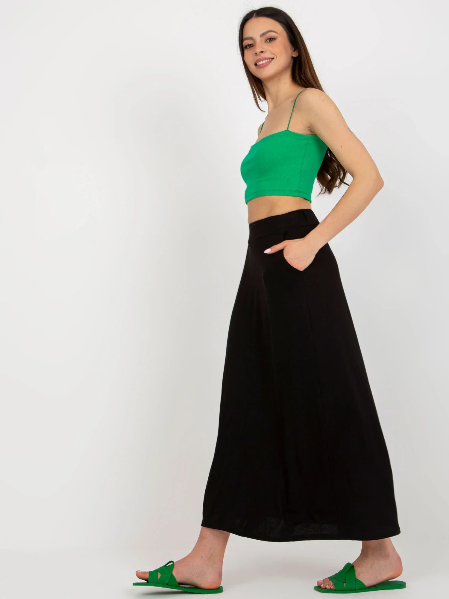 Černá midi sukně s kapsami od RUE PARIS .
