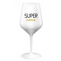 SUPER MÁMA - bílá nerozbitná sklenice na víno 470 ml