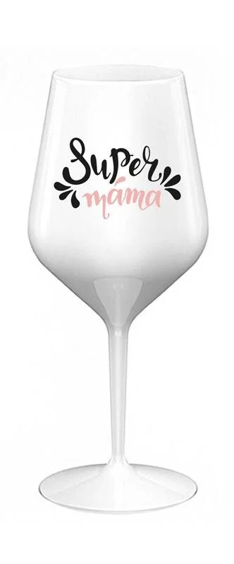 SUPER MÁMA (SPECIÁLNÍ EDICE) - bílá nerozbitná sklenice na víno 470 ml