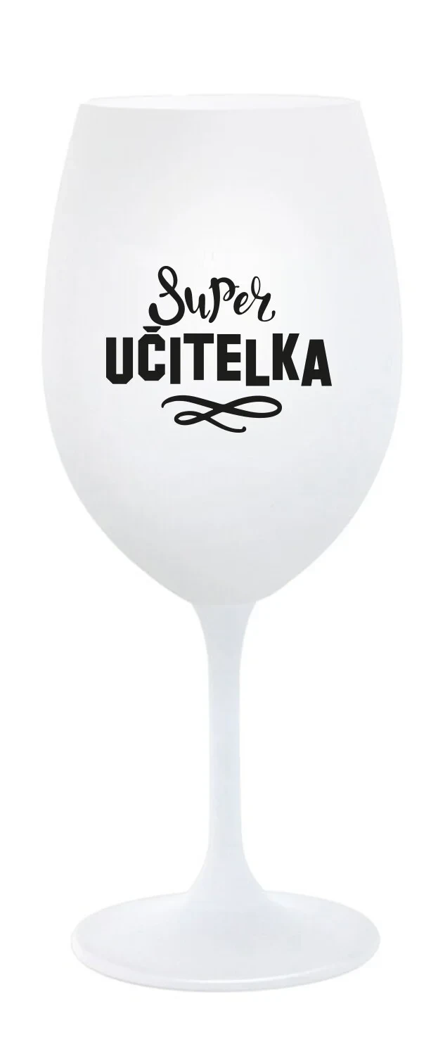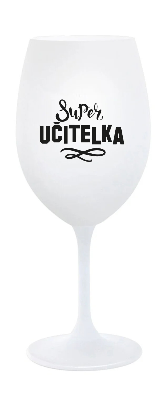 SUPER UČITELKA - bílá sklenice na víno 350 ml