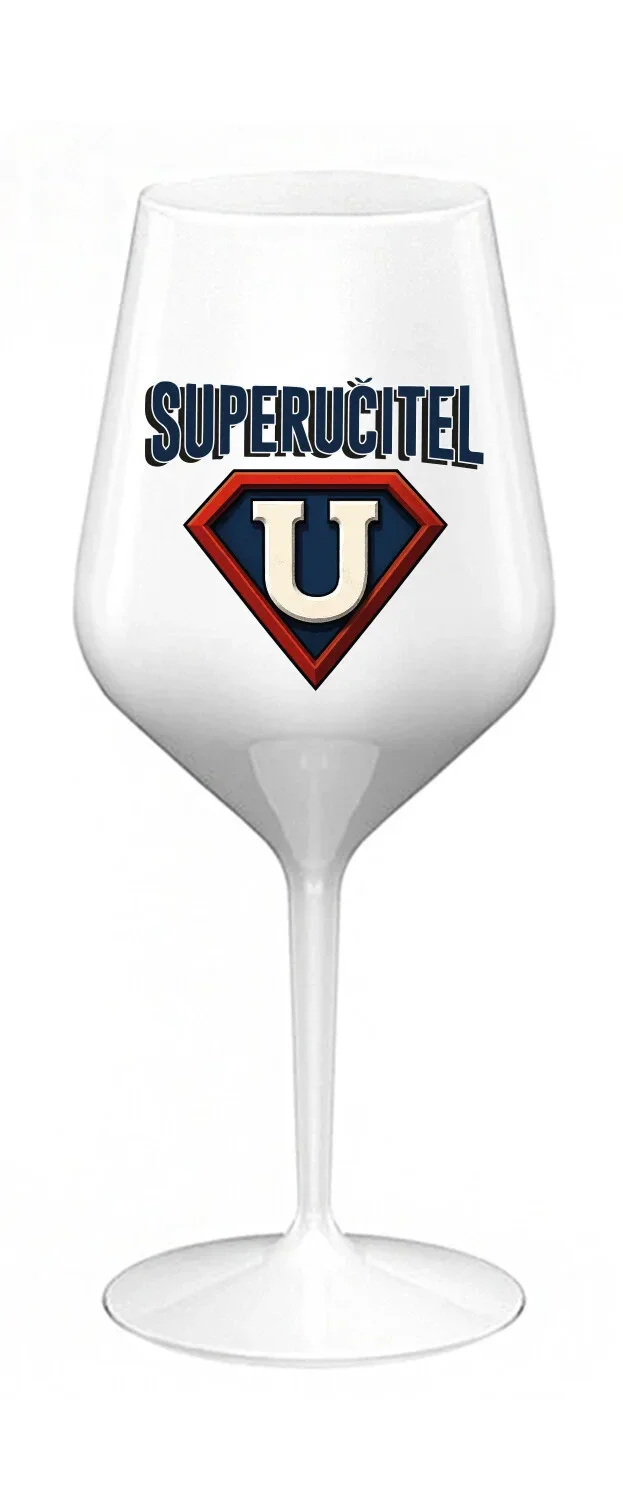 SUPERUČITEL (ZNAK) - bílá nerozbitná sklenice na víno 470 ml