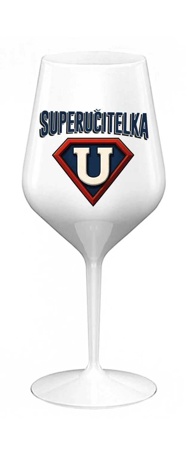 SUPERUČITELKA (ZNAK) - bílá nerozbitná sklenice na víno 470 ml