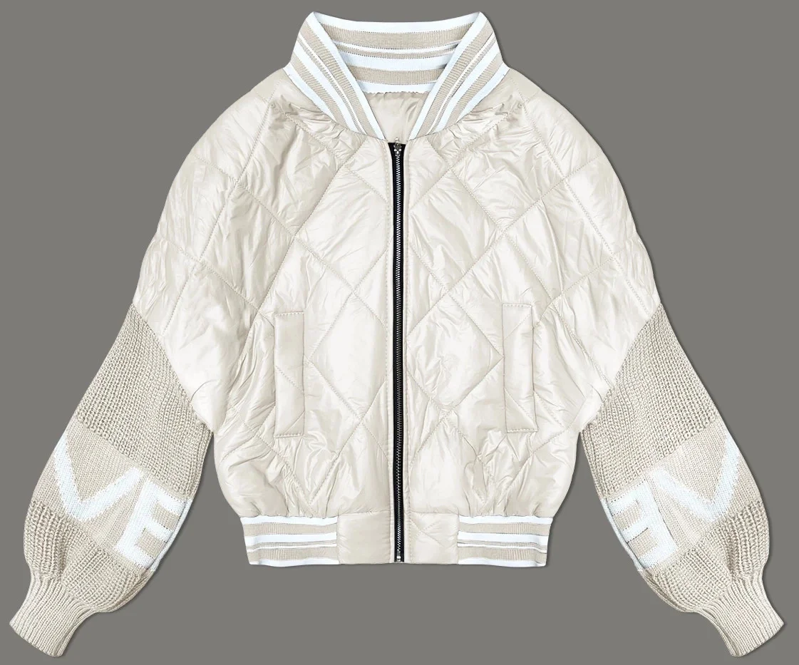 Světle béžová dámská bunda typu "bomber" se rukávy model 19739177 - MADE IN ITALY