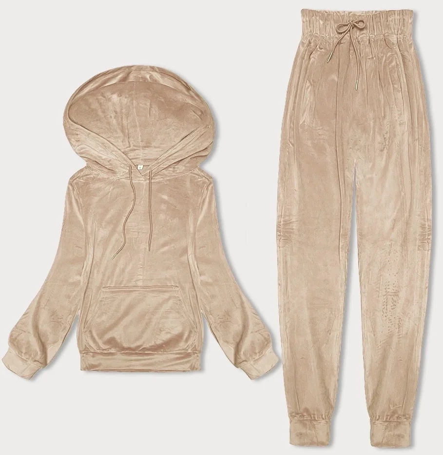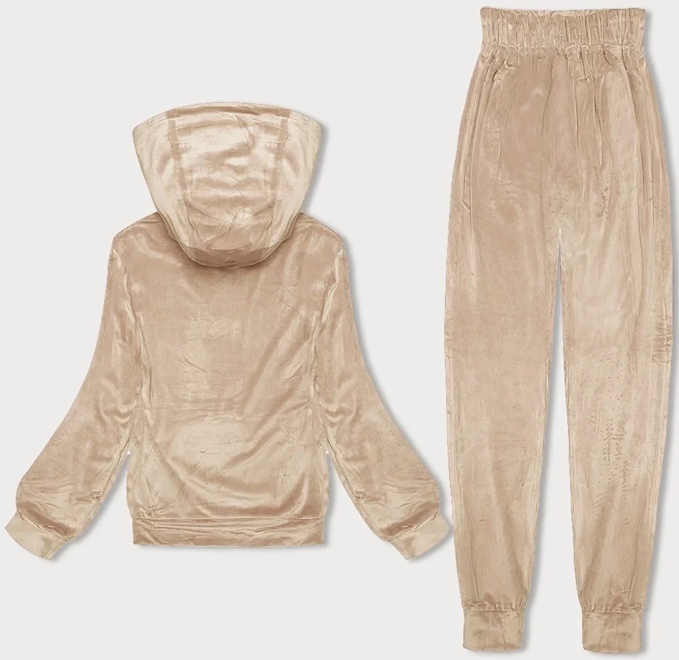Světle béžová dámská velurová souprava s kapucí (8C1175-159)