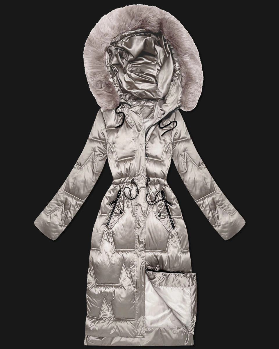 Světle béžová dámská zimní bunda se stahováním v pase S'West (B8522-46)