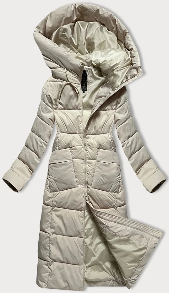 Světle béžová dlouhá dámská zimní prošívaná bunda model 21248635 - Libland